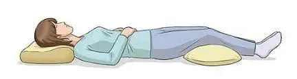 2. 무릎 뒤에 베개를 받쳐 허리에 부담되는 하중을 덜어준다.