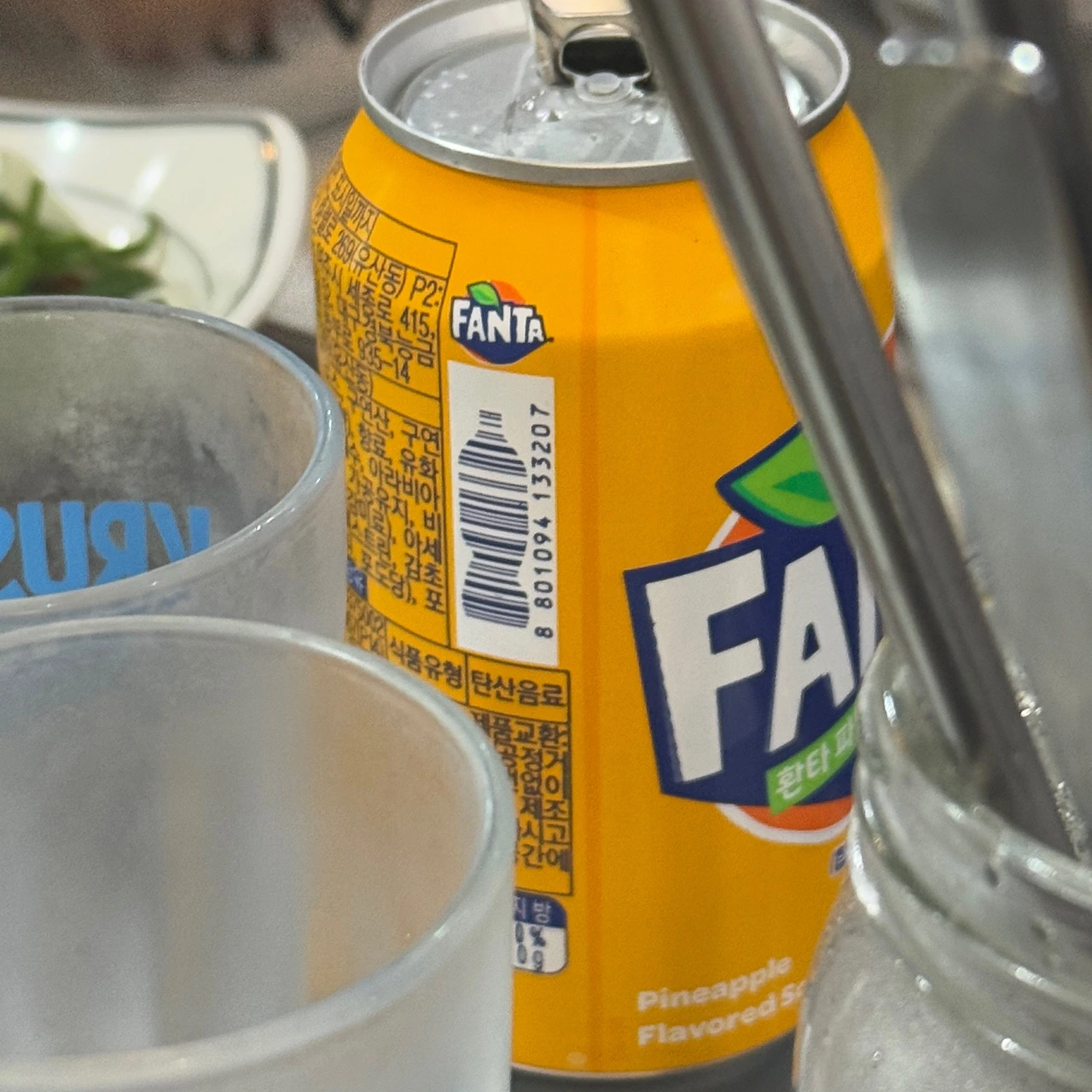 J가 보내준 환타 캔의 바코드 사진이에요. 페트병 모양의 바코드라니! 귀여운 디테일입니다.