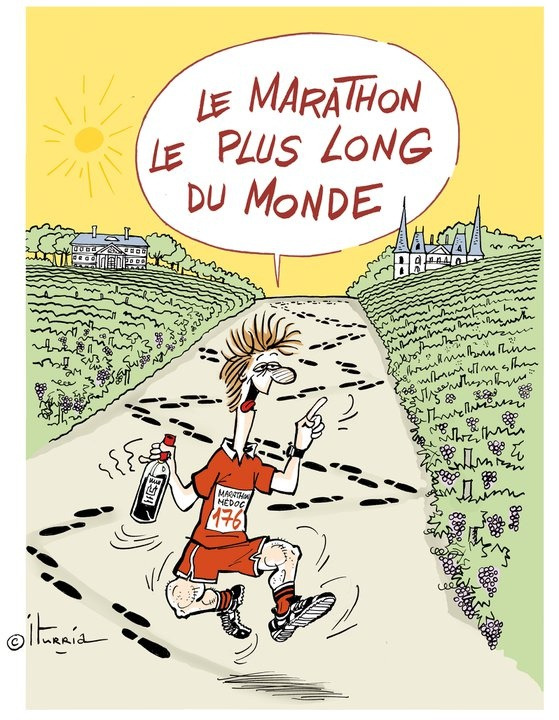 프랑스 보르도 지역의 메독(Médoc) 지방에서 매년 9월 개최되는 이 마라톤은 "세상에서 가장 긴 마라톤"이라고 불립니다. 그 이유는 코스튬을 한 러너들이 달리다 멈춰서 와인을 시음하고, 음식을 먹고, 춤추고, 사진을 찍기 때문이에요. 중간에 와인 스탑만 무려 23곳에 마라톤 후반부에는 굴, 스테이크, 치즈, 아이스크림 등 코스요리도 나온다고 해요. 대회 포스터 좀 보세요. 저렇게 취해 갈 지(之)로 뛰니 세상에서 가장 긴 마라톤일 수밖에!