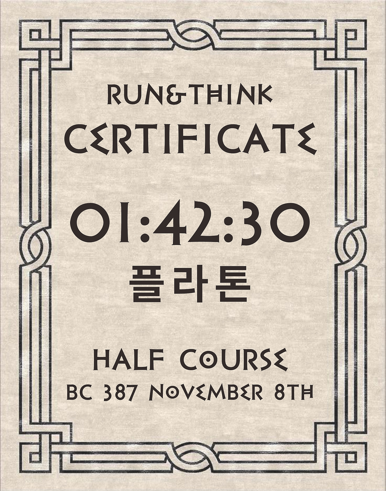 철학의 황금기였던 고대 그리스를 모티브로 기획한 마라톤입니다. 러너들은 출발점에서 철학적 질문을 받게 되고 골인지점인 아고라*에 도달하면 자신이 달리는 동안 정의내린 생각을 주고 받습니다.