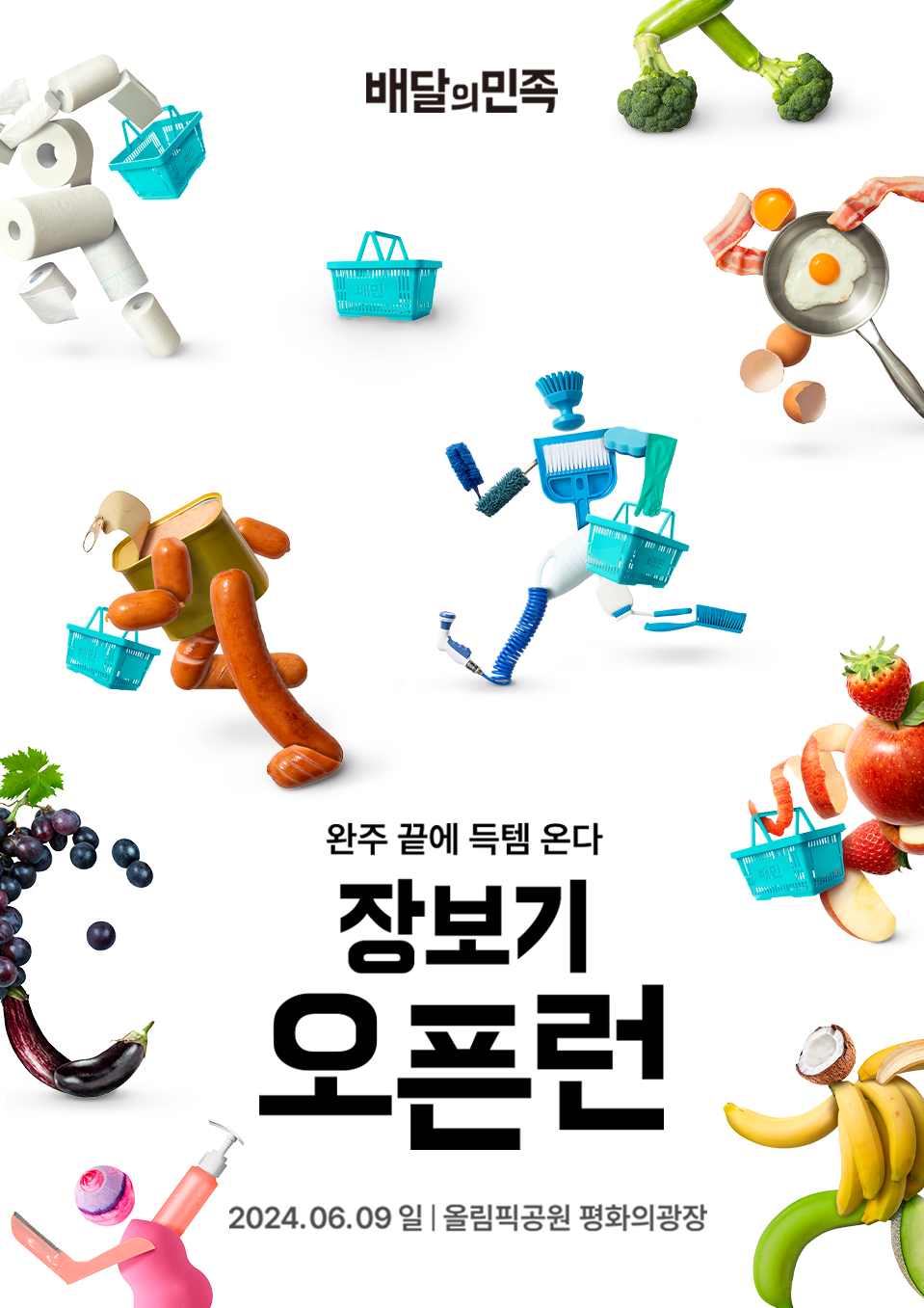 배달의민족에서 주최했던 ‘2024 장보기오픈런’입니다. ‘달리기’와 ‘장보기’를 결합한 이색 러닝 마라톤 대회인데요, 출발지에서 준비된 장바구니에 원하는 상품을 담고 완주하면 장바구니 안의 상품들을 전부 리워드로 받을 수 있습니다. 장바구니가 무거워서 도저히 완주를 못하겠다구요? 코스 중간에는 과한 욕심을 내려놓을 수 있는 '무소유 카트'도 있답니다.
