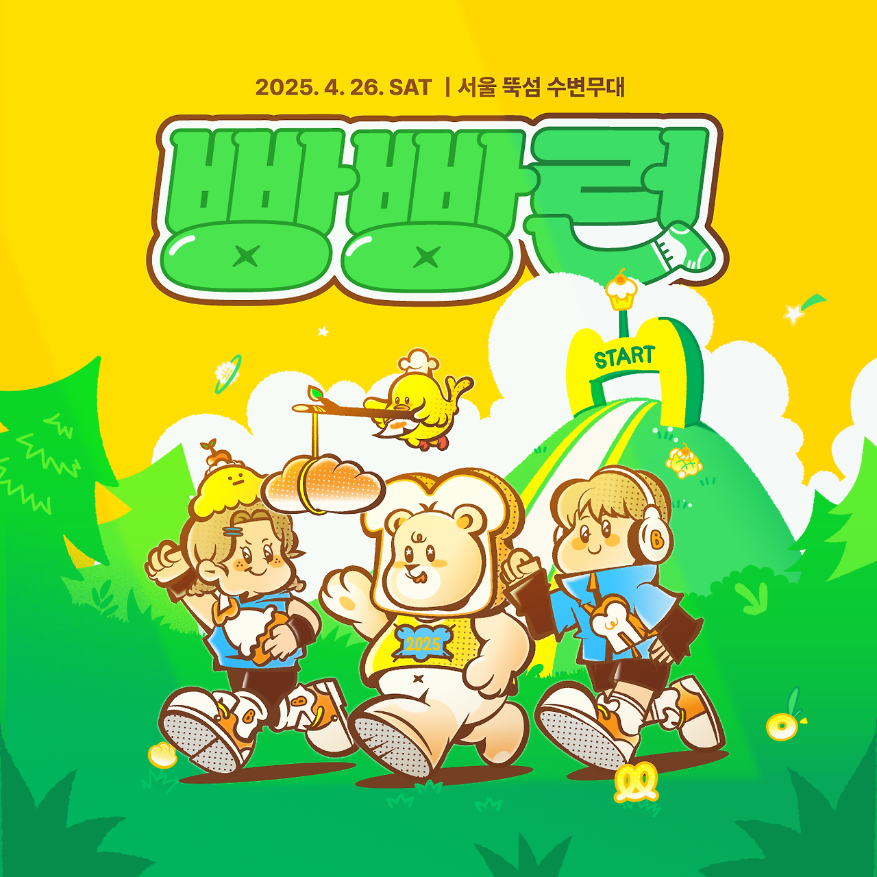 완주하면 빵을 주는 ‘빵빵런’입니다. 참가자 1인당 1개의 빵을 기부하는 캠페인도 진행해요. 달리기는 싫어해도 빵 싫어하는 사람은 못 봤거든요. 게다가 귀여운 세계관도 있는데요, 우주로 맛있는 빵을 찾아나선 곰돌이 팡이가 빵을 너무 많이 먹은 탓에 우주선이 무게를 버티지 못하고 지구에 불시착하며 펼쳐지는 스토리입니다. (이때 얼굴에 낀 빵이 빠지지 않는대요! 이런~)