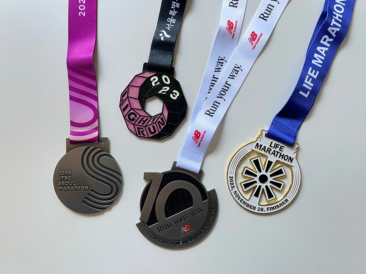 종종 마라톤도 나가는데요, 저의 완주를 기념하는 메달들이에요. 잃어버린(?) 메달도 있지만 모아놓고 보니 하나하나 얼마나 값지고 뿌듯한지! 올해는 더 열심히 메달을 모아볼 계획입니다.