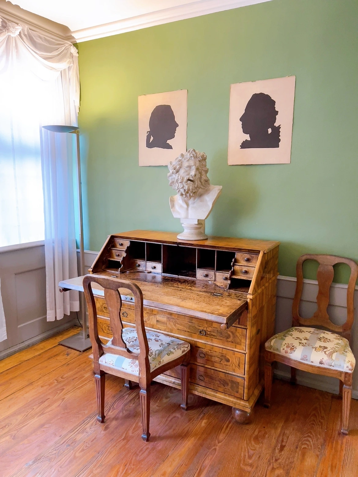 이 건물은 사실 2차 대전에 폭격을 받고 거의 다 무너졌었다고 한다. 그러면 이 많은 전시물들은 어디에서 온 것인가? 괴테의 집이 보존 가치가 큰 유산임을 인지한 독일인들이 미리 주요 물품을 옮겨두어서 우리가 현재 볼 수 있는 것이다. 비록 씻지 못할 죄를 인류에게 저지른 전범국이긴 하지만 그들의 용의주도함과 후대에 전해야할 가치가 있는 것들을 지켜내는 계획성에 놀랐다.