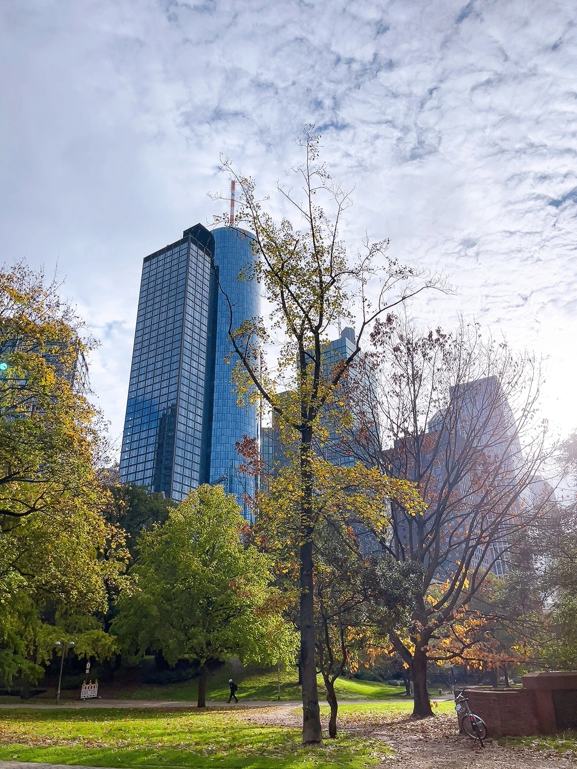 내가 올라간 출구는 타운우산라그 공원과 바로 맞닿은 곳이어서 조금 놀랐다. 주위는 도이치뱅크를 비롯해 세계 여러 나라 은행들이 즐비했고, 다국적 기업들이 들어서 있었다. 유럽 치고는 드문 스카이라인이다. 푸랑크푸르트가 독일에서도 경제 도시의 역할을 하고 있는 곳이라 그러하다.