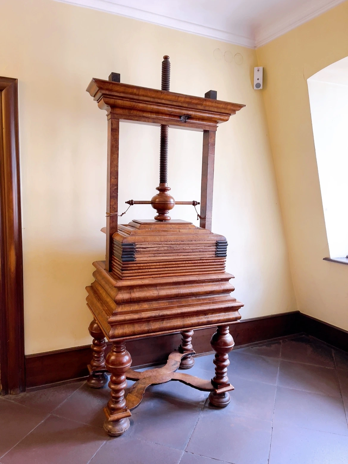 호두나무로 만들어진 세탁물 압착기도 처음 본 기계라 무척 신기했다. 12개의 판 사이로 시트를 넣어서 다렸다고 한다. 다른 층계참 구석엔 침대 시트만 따로 보관하는 큰 장롱이 두개가 있었다.