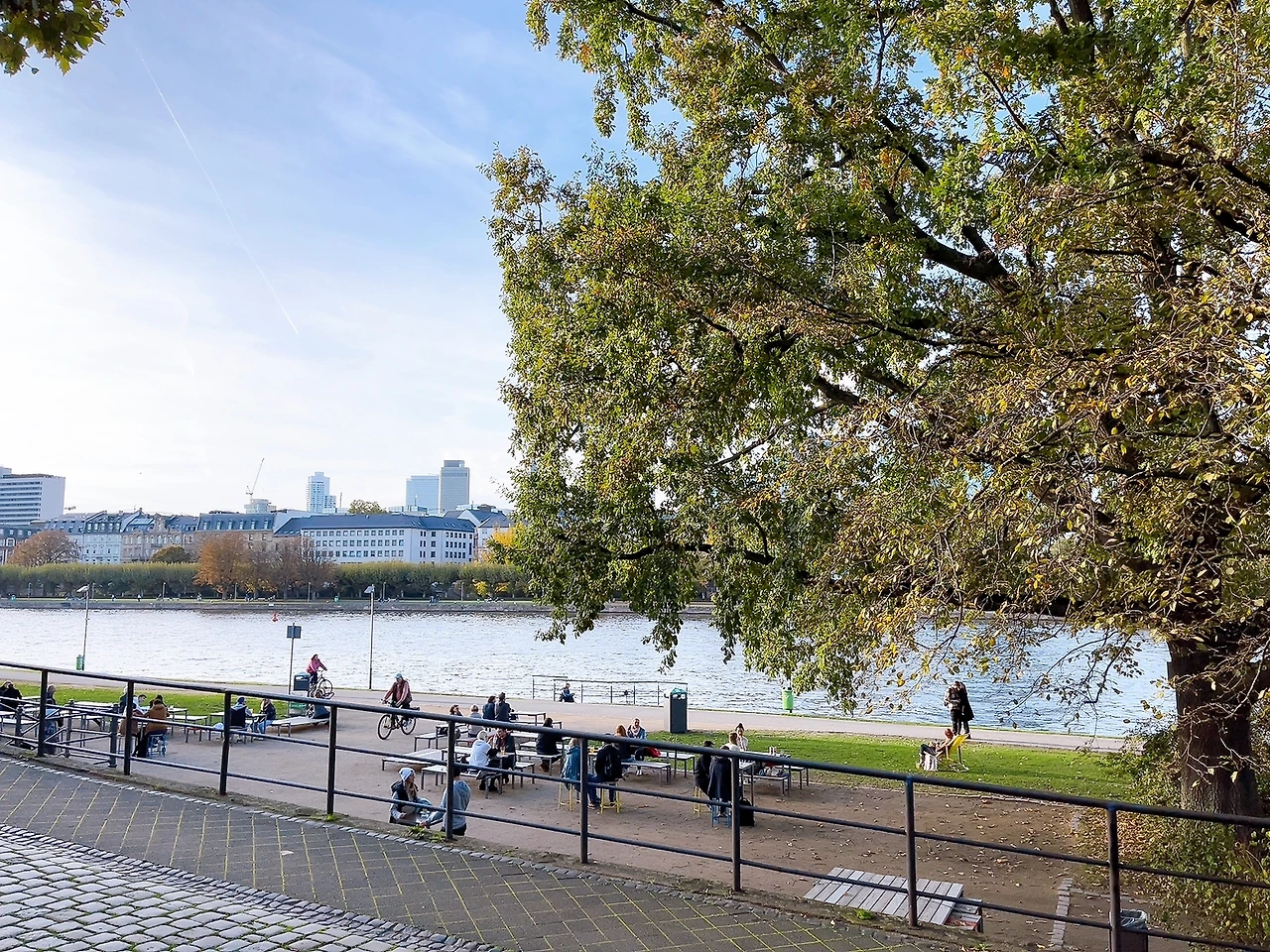 마인강으 남쪽 즉 강남이라고 할 수 있는 작센하우젠은 높지 않은 고급 빌라들이 늘어서 있어서 쾌적하고 살기 좋은 동네 분위기이다. 사과 와인인 아펠바인을 마시기 위해 아이젤너다리를 건넜다. 사랑의 자물쇠가 다리 난간에 가득 달려있는데 오래되어서 녹이 슨 자물쇠들도 있었다. 계속 외부에 노출되는 이런 자물쇠들이 빗물에 철성분을 씻고 내려가며 수질을 오염시키는 게 아닐까 괜히 걱정이 되었다. 그러면 물고기들도 중독이 될테고 사람 입으로 다시 들어가겠지.