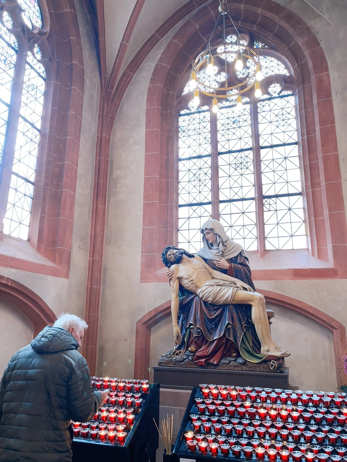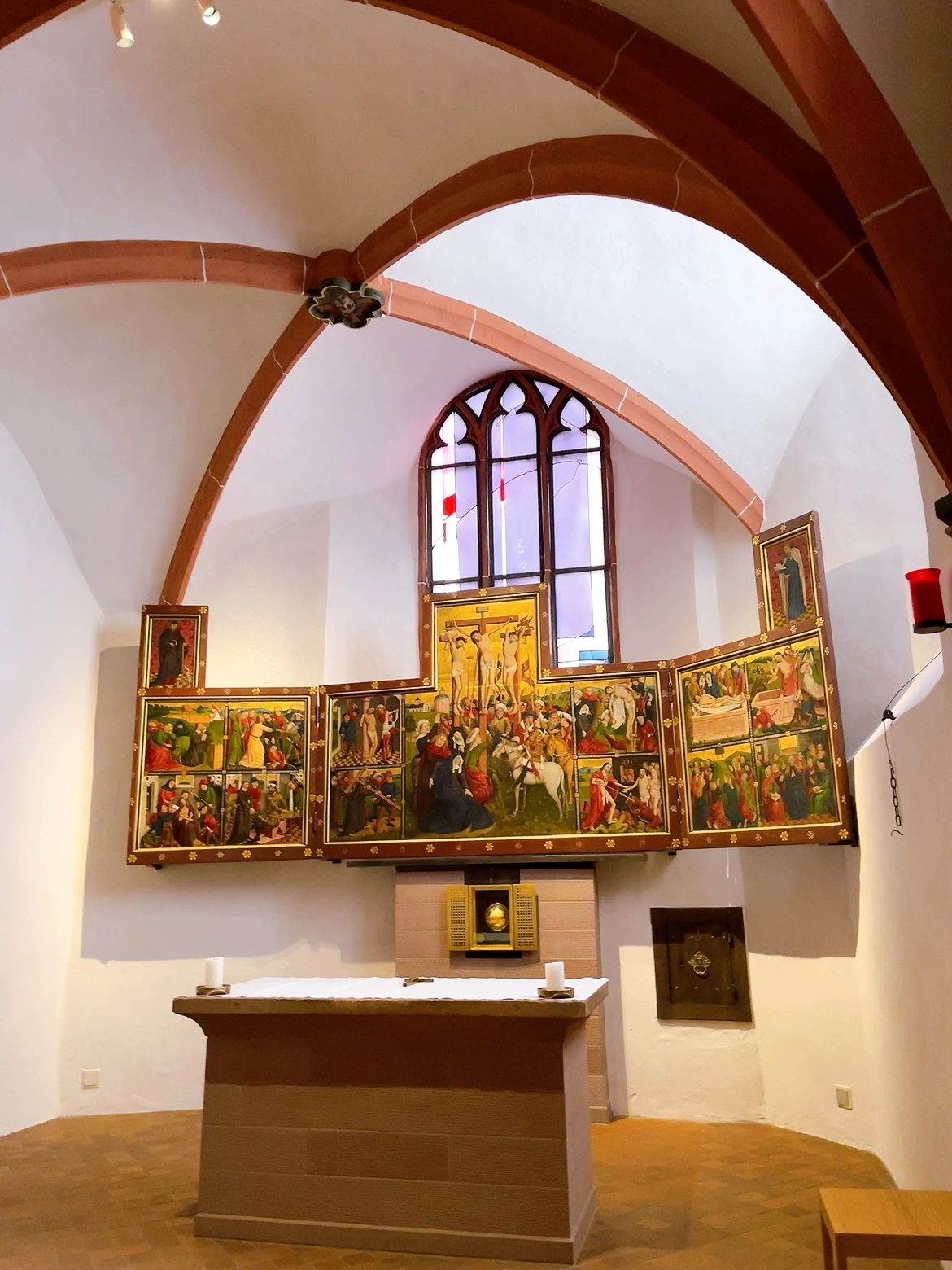 괴테하우스에서 조금만 걸어가면 보이는 성카타리넨교회는 소박하지만 잘 유지되고 있으며 정갈한 인상의 장소이다. 괴테가 태어났을 때 유아세례를 받은 곳이라고도 알려져있다. 괴테 가문을 위한 지정석이 따로 있을 정도로 괴테와 인연이 깊은 장소라서 방문했다. 시간에 맞춰가면 파이프오르간 연주도 들을 수 있게 시간표가 공개되어 있는데, 혼자 조용히 앉아있고 싶어서 아무도 없는 시간에 갔다. 대신 그리 오래 되어 보이지는 않지만 성능이 아주 좋을 것 같이 보이는 저 파이프 오르간이 울리면 이 공간이 어떻게 꽉 찰지 상상을 해보았다. 나 혼자를 위한 연주가 울리는 성당에 있다고 생각하니 마음이 벅차고 정화되는 것 같았다.