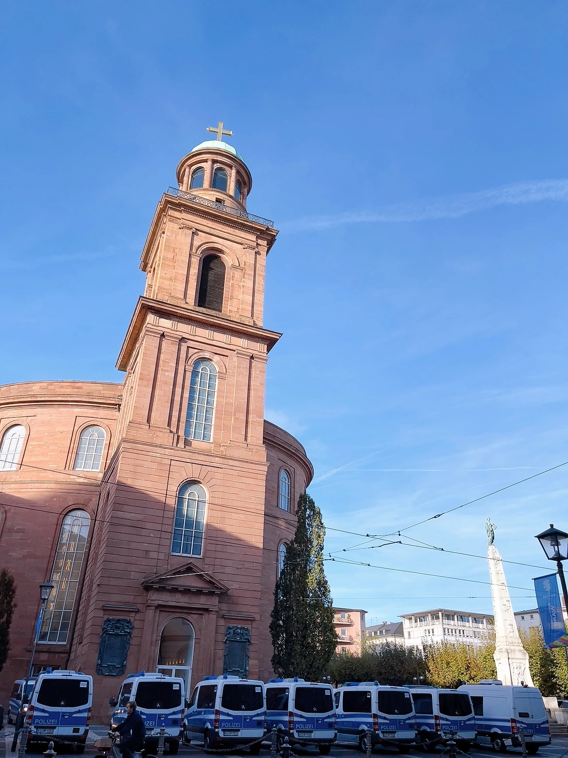 이날은 어찌된 영문인지 트레이닝복에 좋은 체격의 남자들이 뢰머 광장에 모여 있었다. 맥주를 마시며 간간히 축구장의 훌리건들처럼 소리를 지르고 노래를 부르며 분위기를 약간 험악하게 만들었는데, 그들은 그걸 즐기는 듯 했다. 마르세이유와 프랑크푸르트의 경기가 있었다고 한다. 그래서 마치 플레시몹을 하듯 어디선가 나타난 무리가 불어로 노래를 불렀다. 독일 경찰들도 대거 깔렸는데 남자든 여자든 할 것 없이 다들 체격이 좋고 무장한 복장이 멋있었다. 프랑스어로 안내방송이 나가며 훌리건들을 진정시켰고, 늘 있는 건지는 몰라도 말을 타고 나온 기마경찰들도 광장 건너편에서 대기중이었다. 말들은 오래 지속되는 대기 시간때문에 거리의 포석 위에 커다란 변을 떨구었다.