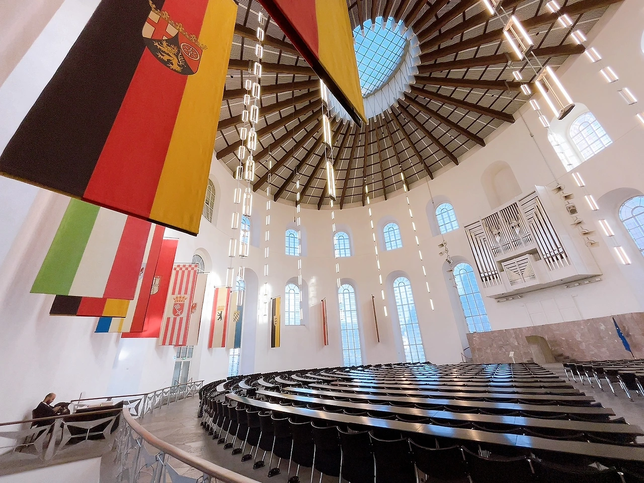 뢰머광장 옆에는 성파울교회가 있는데 최초의 국민회의가 열렸던 곳이라고 한다. 내부는 성당의 느낌보다는 컨퍼런스장소 같은 느낌이었다. 돔 형태라 1층에는 원통형으로 둘러싼 벽이 있는데 여기에 국민회의를 하는 모습이 그려져 있다.