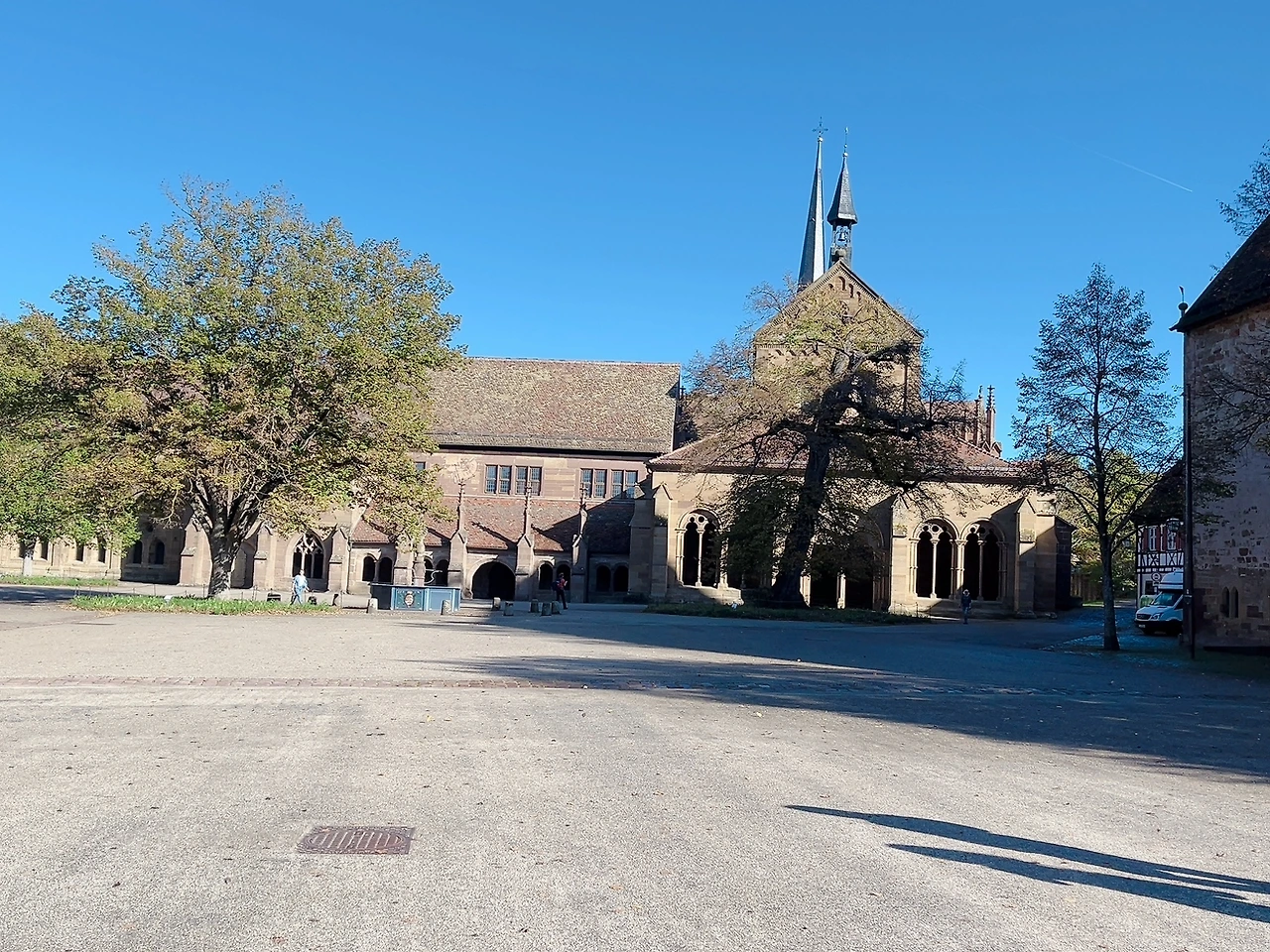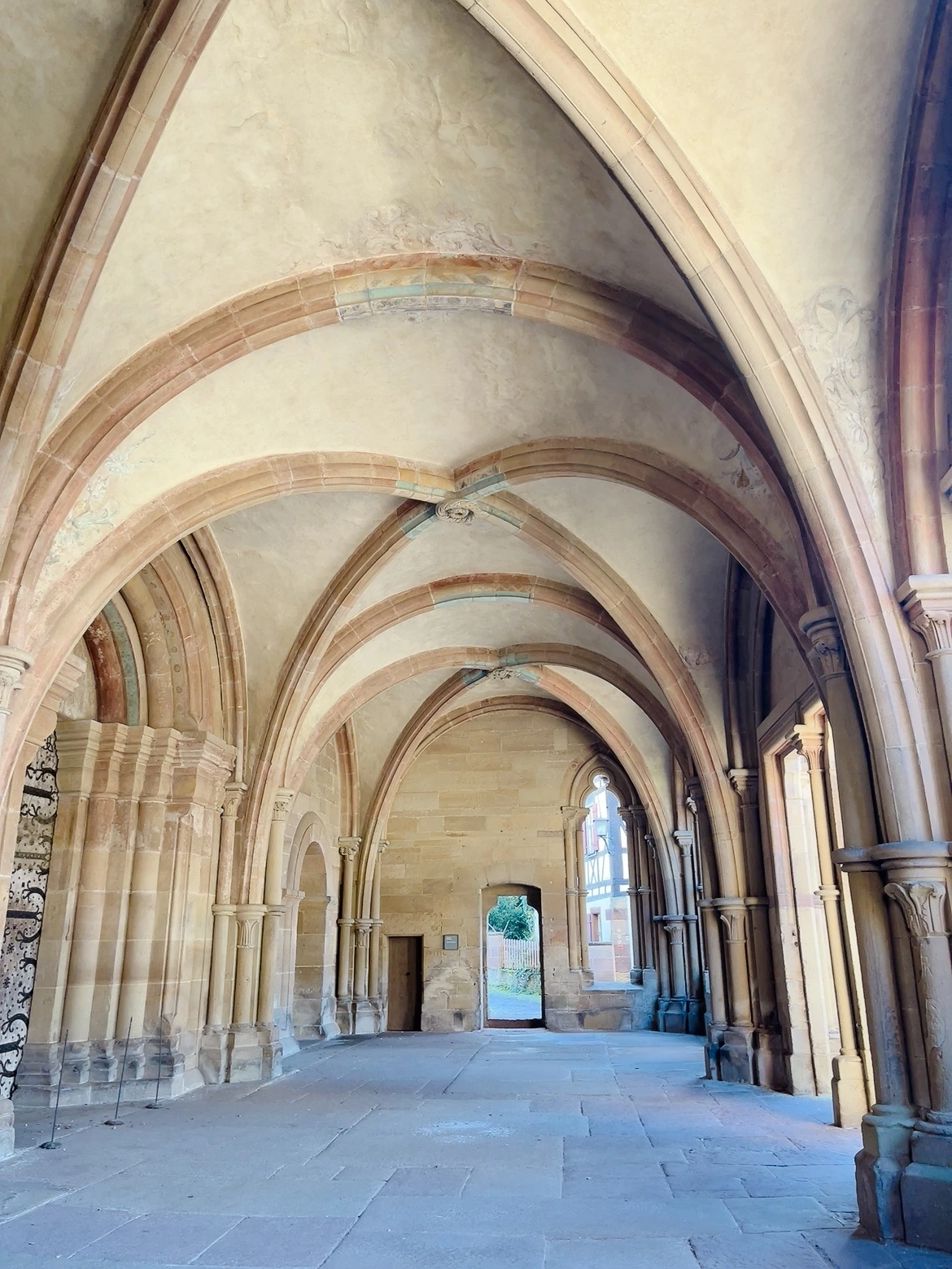 마울브론 수도원은 수도원 건물 단독으로만 있는 게 아니라 하나의 또 다른 마을 단위처럼 여러 개의 부속 건물들이 있었다. 요새나 성채의 느낌이었다. 약국도 있고 식당, 아이스크림 가게, 서점 등이 수도원 초입에 양팔로 휘감듯 들어서있다. 안내와 티켓 판매를 위한 건물은 따로 있었다. 그곳에서는 수도원 근처에서 본 포도밭에서 난 포도로 만든 와인을 판매하고 있었다. 그 맛이 좋다 하여 꽤 궁금했지만 만약 차를 운전해 왔다면 몇 병 샀음 직해도 다시 프랑크푸르트로 갈 일을 생각하니 무리라 생각되어 내려놓았다. 티켓과 오디오 가이드를 받아서 수도원 중앙 건물로 향했다.