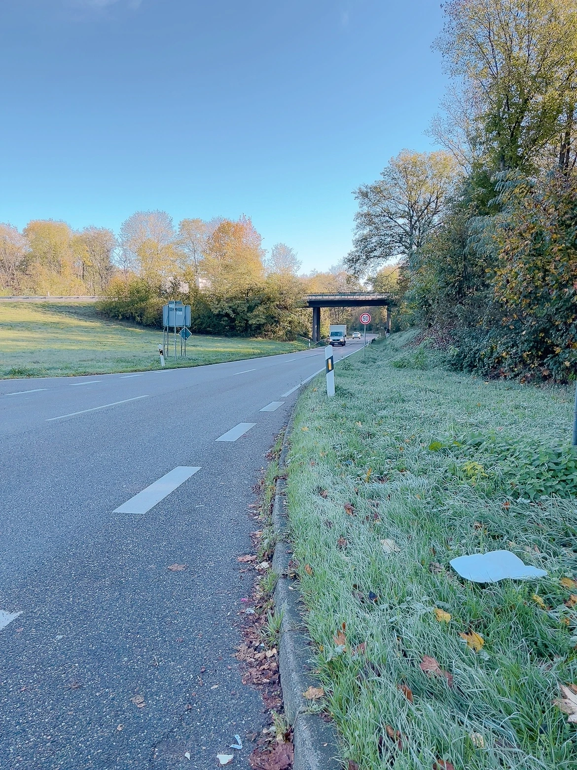 그러니까 나는 차들이 쌩쌩 달리는 고속도로 옆의 잔디 위로 걸어야 했던 것이다. 발이 푹푹 빠지며 통기성이 좋은 운동화는 이내 축축해졌다. 걷다 보니 마울브론으로 가는 길을 확인할 수 있는 표지판이 나타나 그나마 위안이 되었다. 하지만 내 옆을 달리는 그 성능 좋은 유명한 독일 차들의 스피드에 어질 했고, 찰나에 눈을 마주친 운전자마다 어째서 저런 길 위를 걷고 있는 걸까 하는 눈으로 날 보고 지나가서 민망하고 무안했다.