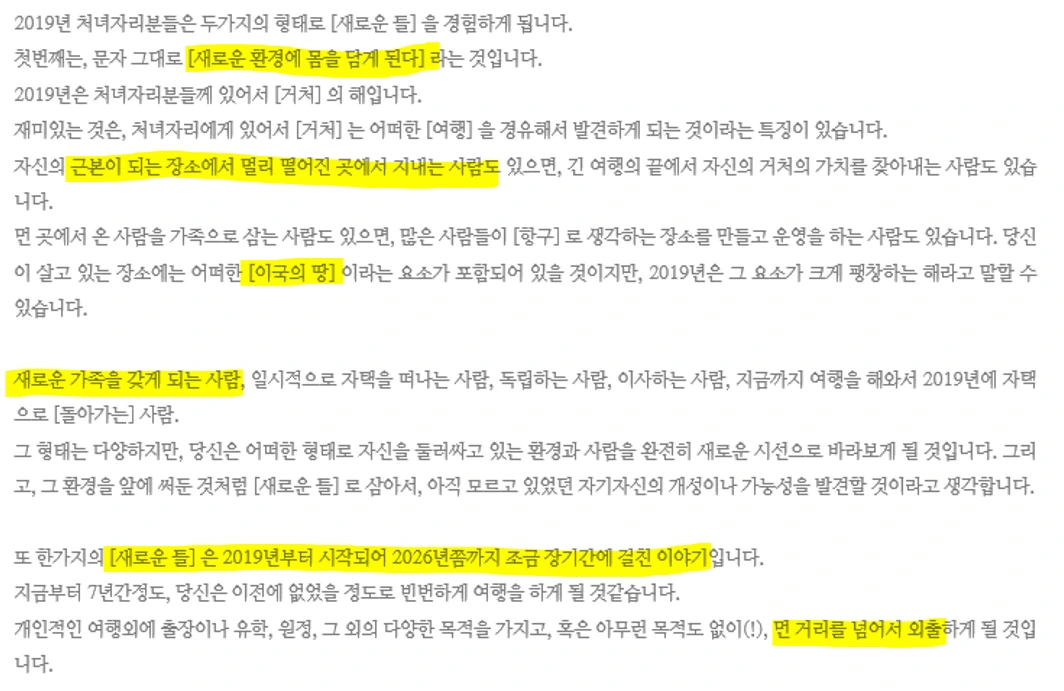 6월 2일. 팟캐스트 '영혼의 노숙자'에 86화 에피소드가 공개된 그 날, 나는 이시이 유카리 님(별자리 점성술가)을 영접하게 되었다. 내 생일은 9월 16일 처녀자리다. 이시이 유카리 님은 2019년 처녀자리의 운세를 다음과 같이 점쳤다.