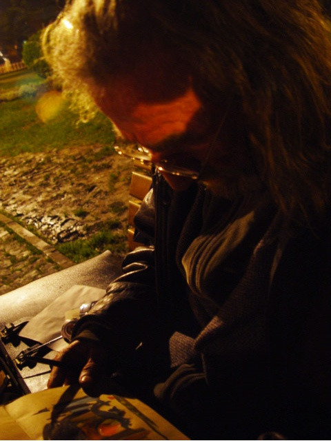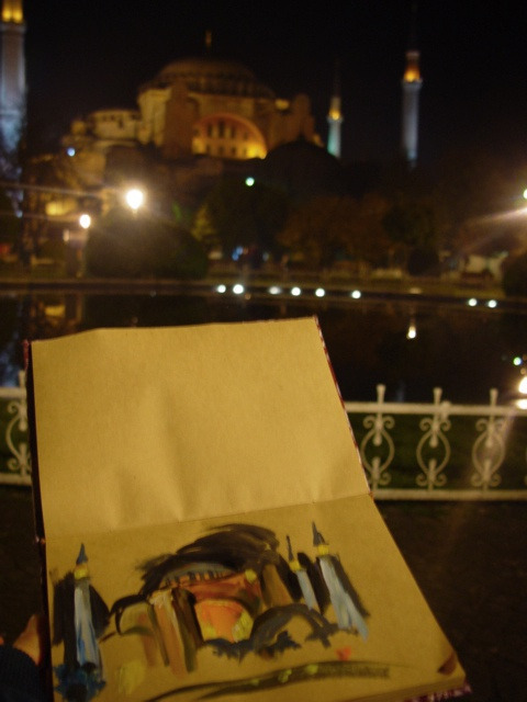 그 세계문화유산인 소피아 대성당의 야경을 소묘가 아닌 아크릴 물감으로 그리고 있었다.