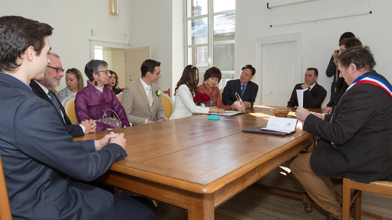 남편은 로맨틱한 아이디어인 마냥 제안했다. 첫 밸런타인 때 많은 추억을 만들었던 게 생각이 났고 남편의 아이디어도 나쁘진 않았으나 세상의 모든 커플이 축하하는 날을 우리 결혼기념일로 만들고 싶진 않았다. 그래서 나는 그전에 가능한 날짜인 2월 10일을 택했고, 그렇게 시청 결혼 날짜가 결정되었다. 하지만 안타깝게도 2달 정도밖에 남지 않은 상황에서 같은 날 샹보르 성 채플에 날짜를 배정받기란 불가능에 가까웠고, 상황이 이렇게 되자 남편은 시청에서 간단한 서약만 하고 결혼식은 나중에 뉴욕에 가서 다시 하는 게 어떻겠냐고 제안했다. 해외 드라마를 보면 커플 둘이 시청에 가서 법적으로 결혼 서약을 하고, 그 후에 친구나 가족들과 뒤풀이를 하는 게 소위 로맨틱한 결혼인 것처럼 나오는 경우가 많다. 한국 같으면 거창한 결혼식 이후 따로 서류처리만 할 혼인신고를 해외에서는 실제 결혼식으로 대체하기도 하는가 보다. 막상 내가 그런 드라마의 주인공처럼 남편과 둘이서 프랑스 시청에 가서 잘 알아듣지도 못하는 언어로 서약이나 하고 끝내야 한다면, 아무리 미래에 결혼식을 기약한다고 해도 첫 결혼인데 기분이 이상할 것 같았다. 혼전 동거를 하고 풍습을 타파하는 걸 좋아하는 것처럼 보이는 나일지언정 사랑을 믿는 로맨티시스트인 나는 결혼은 아무 느낌 없는 서류 처리로 적당히 끝내고 싶지 않았다. 게다가 남편 성격상 미래로 미루겠다는 말은 실제로 현실화될지 안 될지 불분명하다는 뜻인 것을 나나 남편 식구들은 누구보다 잘 알고 있었다. 그래서 이왕 시청에서 서약할 거 식구들과 다 같이 모여서 서약식을 하고 피로연을 해서 간단하게라도 결혼식을 하는 게 좋지 않겠냐고 시아버지가 역제안을 하셨다. 어른 말이라고 다 공경하지 않는 프랑스에서도 이럴 땐 어른의 말이 좀 필요했다. 남편은 본인도 뾰족한 수가 없는 만큼 간단한 결혼식으로 치르는 데에 동의했고, 이렇게 해서 우리는 시아버지의 선견지명으로 다행히 소소하게나마 가까운 가족들만 부르는 결혼식을 준비하게 되었다.