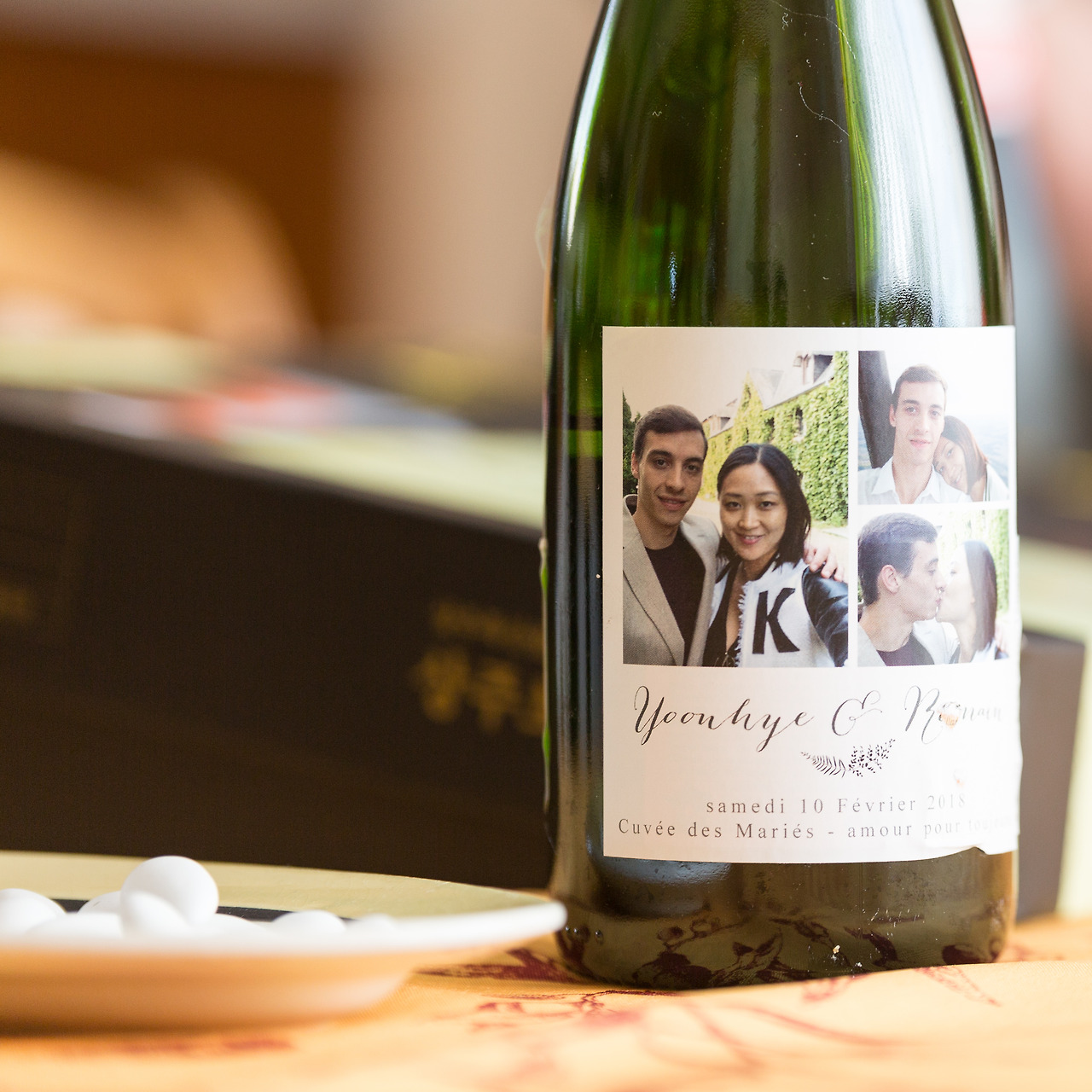 나름 프랑스와 한국에서 각자 준비한 수많은 결혼 기념품들을 하나하나 다 설명하기에는 이번 글이 너무 길어질 것 같아, 사진으로나마 우리의 특별한 날을 공유하고자 한다. 그 기념품들로는 시어머니가 직접 맞춘 내 부케, 친정 엄마와 내가 디자인을 골라 맞춘 맞춤 한복, 시댁에서 결혼식 주간 내내 마실 와인에 준비한 커플 라벨, 친정 엄마가 준비해 간 한복 와인커버 그리고 한국의 전통을 듣고 시아버지가 직접 준비한 초 등이 있다. 여태까지 디테일 있게 설명한 적 없었던 우리 결혼식에 가상으로 참석해 관심 있게 이 글을 읽어준 당신에게 감사의 말을 전하며, 어설픈 우리의 셀프 웨딩에 당신에게도 귀감이 되었기를 바라본다.