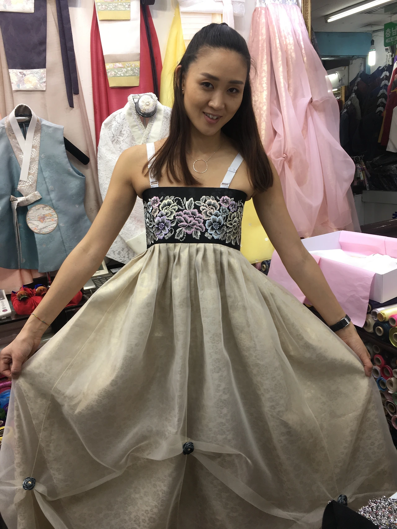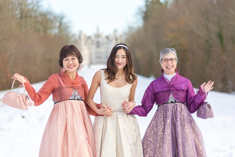 한국에서 다 같이 프랑스로 건너갈 계획을 한 우리 가족은 틈틈이 시댁 식구 선물도 준비했다. 그래서 나는 쉬는 날이면 엄마랑 서울 여기저기를 뒤지고 다녔다. 그중 가장 시간을 많이 쏟았던 건 바로 맞춤 한복이었다. 한국 결혼식이 아니기에 폐백을 따로 준비하지 않은 우리 커플은 따로 한복을 입을 계획은 없었다. 하지만 통상적으로 한국 결혼식에서 고운 한복을 차려입고 신랑 신부 입장 전에 촛불을 밝히는 두 어머니를 생각하며, 엄마는 시어머니와 함께 맞춤 한복을 입고 싶어 했다. 엄마는 나만큼이나 엄마도 딸의 결혼식에 친정 엄마 역할을 하고 싶은 마음인 것이라고 설명했다. 엄마는 가족이 다 같이 프랑스에 가 드디어 시댁 식구를 만난다는 것에도 들떠 있었지만 무엇보다도 내가 드디어 정식으로 결혼을 한다는 것 자체로 그동안의 걱정을 말끔히 씻어버리는 듯했다. 굳이 집고 넘어가자면 우리가 양가 부모님을 생각해 결혼을 결심한 건 절대 아녔지만, 그동안 우리의 고난과 역경을 잘 아는 부모님들에게 있어 우리의 결혼은 당연히 축하할만한 일이었다. 이런 소소한 의미를 되새기기 위해 우리는 양가 부모님 그리고 남편의 형제들만 불러서 축하하기로 했다.