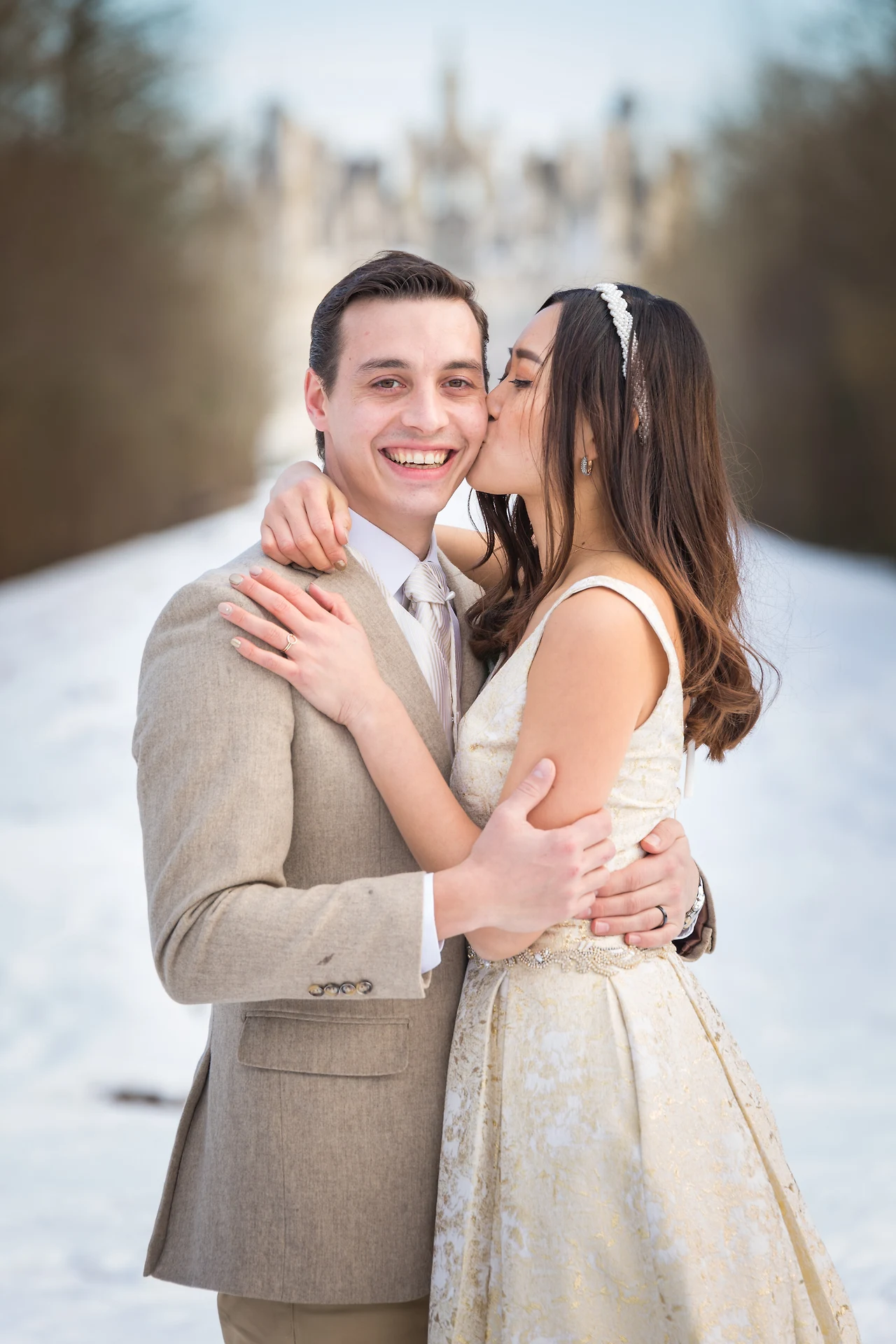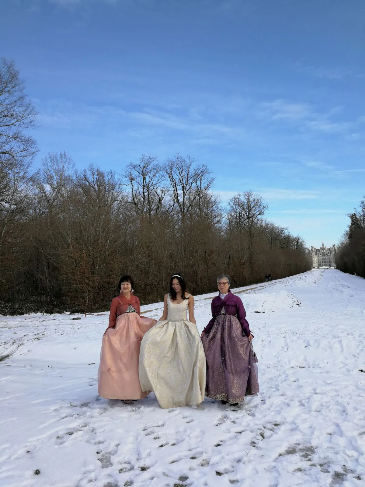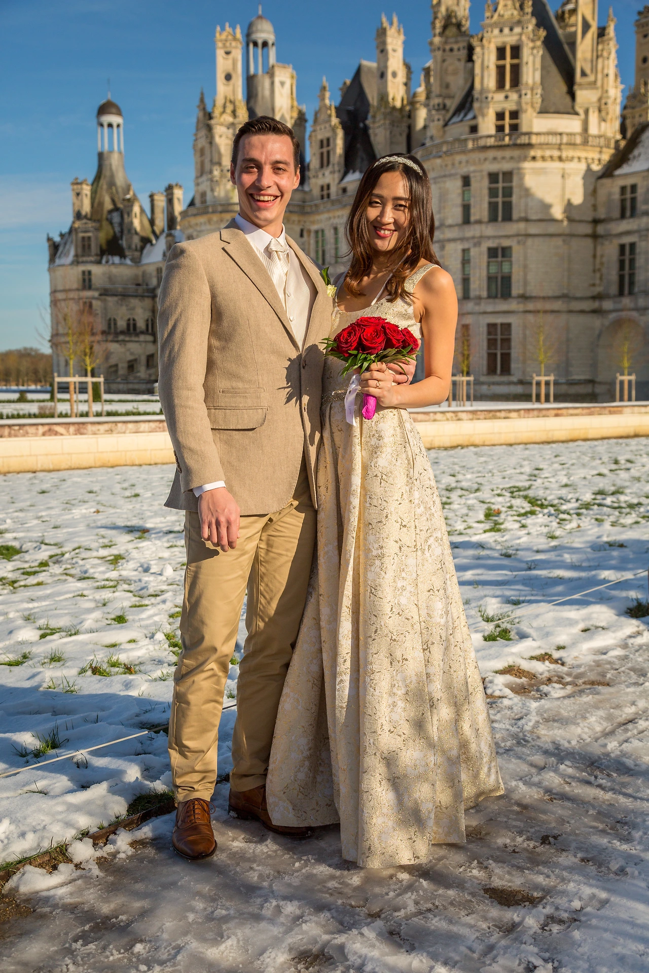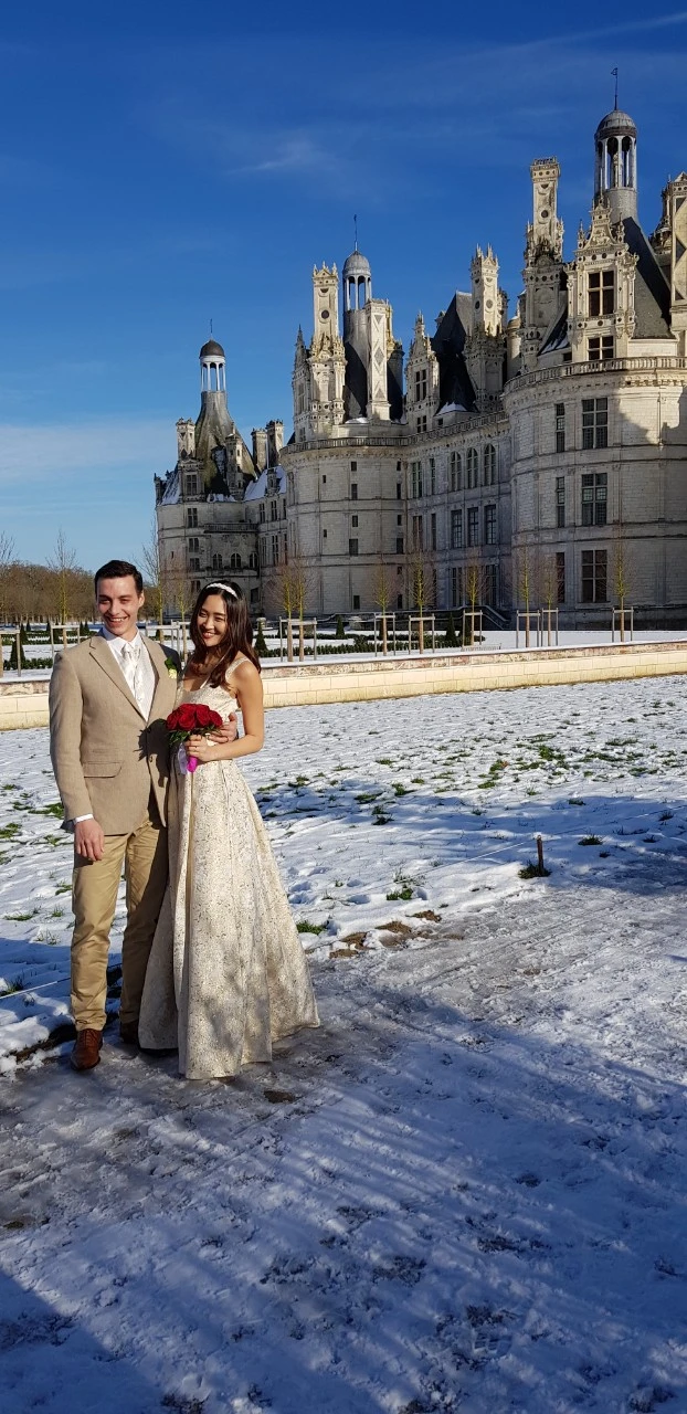 밸런타인데이가 아닌 우리만의 웨딩 데이를 잡은 덕에 우리는 아름다운 날씨를 배경으로 꿈만 같은 웨딩 사진을 찍을 수 있었다. 시댁에 놀러 가 있을 때마다 자전거를 타고 놀러 갔던 샹보르 성 앞에서, 우리는 영원히 기억에 남을 웨딩샷을 찍었다. 비록 채플에서 결혼식을 올리는 것에는 실패했지만 우리에게 추억의 장소인 샹보르 성 앞에서 축복받은 날씨와 함께 아름다운 사진을 남길 수 있다는 건 정말 꿈만 같은 일이었다. 남편과 나는 추위도 잊은 채, 오늘의 느낌을 영원히 간직하고자 서로를 바라보았고, 아기 같은 얼굴이 남아있는 남편의 활짝 웃는 얼굴에는 행복이 가득해 보였다. 깨지는 영상 너머 확신이 없는 얼굴로 눈물의 프러포즈를 할 때와는 사뭇 다른 표정이었다. 나는 이렇게 행복한 결말을 맞이한 우리의 프렌치 엔딩이 너무 소중하고 감사했다.