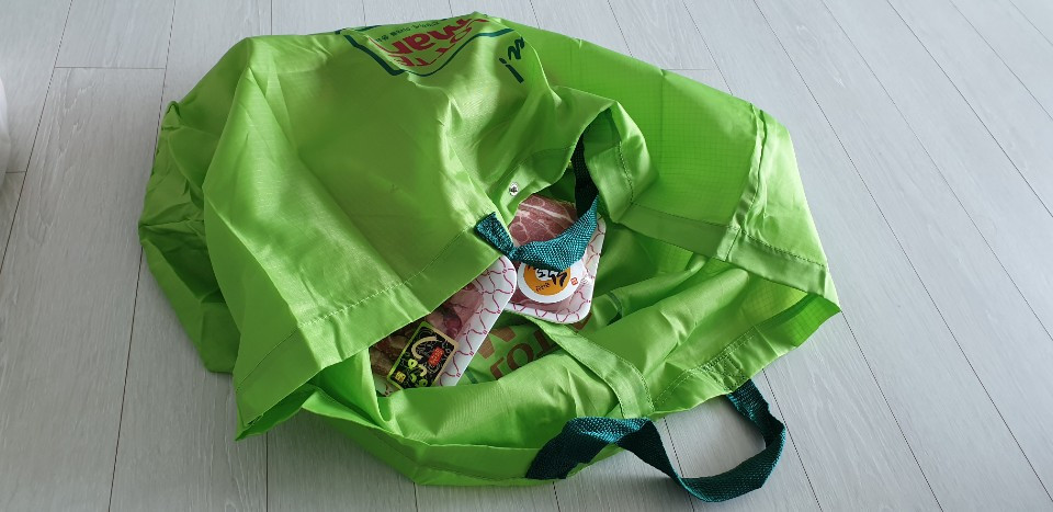 주말에 오는 남편이 단감을 맛있게 먹어주면 됐지 뭐. 그런 생각으로 고기를 제외한 나머지 장본 품목은 박스에 넣어 배달을 부탁했다. 3만 원 이상이면 무료배달까지 해 주는 고마운 마트이다. 집 주소를 물어보더니 배달을 해 주겠다고 한다. 그 순간 왼쪽 손으로 오늘 장 본 걸 다 들고 갈 걱정에 조금 시무룩해져 있던 나는 기분이 한껏 좋아져서 신선도가 걱정되는 고기만 따로 챙겨 친환경 방수천 바구니에 넣고 가게를 나섰다.