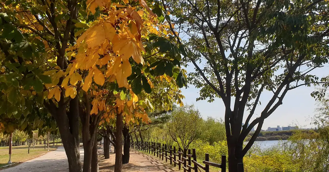 그래서 생각지도 않게 어깨 통증 치료로 주 1회 주변에서 후기가 좋은 정형외과를 방문하게 되었다. 버스 세 정거장 되는 거리, 도보로 30분 내외인지라 걷기 운동 겸 걸어서 다니는 중이다. 우리 아파트 앞 횡단보도를 건너서 잠시 걷다가 커브를 틀면 주변 공원 옆으로 연결되고, 오래된 아파트 뒷 담으로 늘어선 가로수 나무그늘이 드리워진 보도에 떨어진 낙엽을 밞고 걷노라면 영화 앵글 속 가을로 들어가는 느낌이다.
