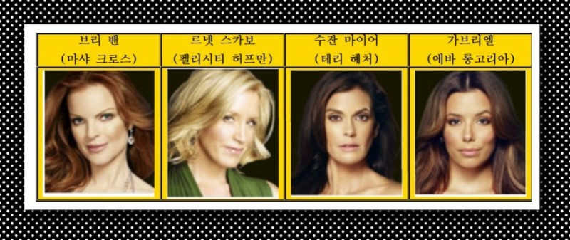 여기서 내가 아끼는 이 드라마의 주연급 등장인물의 소개를 잠깐 해 볼까 한다. 전업주부 브리 밴은 이상적인 프로주부이다. 의사의 아내로 풍족한 삶에 멀쩡한 아들딸을 한 명씩 가진 집안 일과 손님 접대, 요리, 인테리어, 사교 그야말로 못하는 게 없는 homemaker이다. 게다가 아름답고 교양까지 겸비한... 이상적인 현모양처. 감정 조율을 너무 잘하고 언행에 흠잡을 데 없는 똑똑한 여성이다. 그녀의 패션과 교양 있는 말투까지 따라 해 보고 싶은 세련된 주부 스타일.