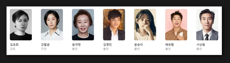이 영화를 감독한 김초희는 윤여정이 아카데미 조연상을 받을 때 함께 갈 1인으로 시상식에 가고 싶었다는 감독이다. 그동안 옆을 지켜 주었고 함께 작품 하면서 동료애가 남다른듯. 물론 영화를 위해서 함께 연기한 주연 여배우와 참석했지만. 최근에 감독과 배우로 만나 함께 찍었다는 작품이 이 영화였는데 감독의 얼굴과 그동안 한 작품을 보니 이 영화를 보고 싶어 졌다.