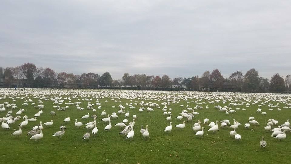 아침에 있던 Snow geese들이 오후에 아이들 픽업하러 갔는데, 여전히 새들이 그대로 있더라. 그런데 이렇게 많은 새들보다 사람들이 놀랍다. 운동장을 점유하고 있는 새들을 보고도 사람들이 아무런 반응이 없더라. 그리고 새들도 사람을 보고 놀라지도 않는다. '대체 왜 저러지?' 하고 물어보니,