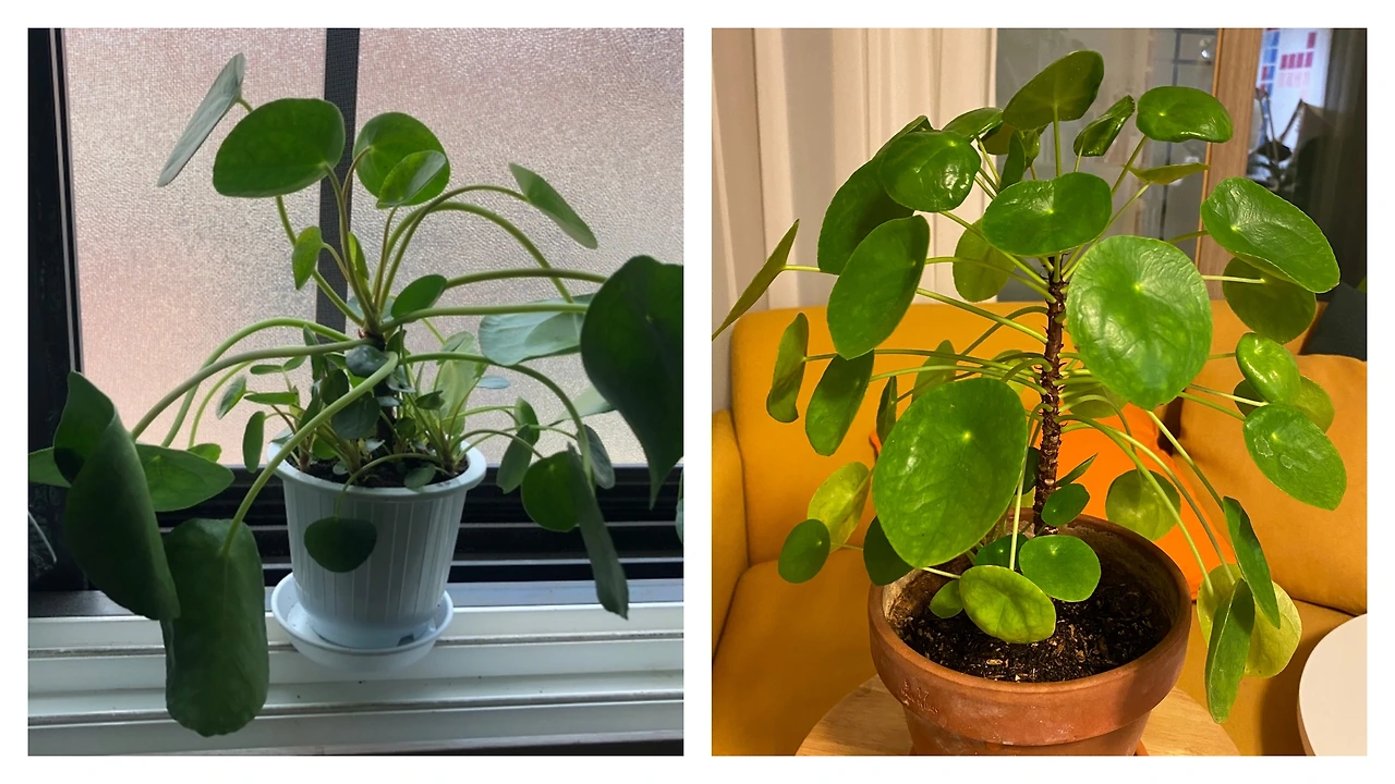 어느 날 문득 필리아페페를 처음 데려왔던 때가 궁금해 폰 사진첩을 뒤졌다. 내가 생각한 것보다 더 볼품이 없었다. 지나치게 긴 줄기에 아래쪽 잎만 커다랬고, 키는 너무 작았다. 그랬던 페페가 이제 알아서 동그랗게 수형을 잡고 자라나고 있는 것이다. 뭔가의 비포/애프터를 보여준다면 이게 좋겠다는 생각이 들었다. 저는 모르겠고요. 저의 페페는 이렇게 달라졌습니다. 가끔은 한 발자국도 나아가지 못한 기분이 들고, 아무것도 달라진 게 없는 것 같고, 지금 뭘 하고 있는지 잘 모르겠다는 생각이 들기는 하는데요. 그래도 저의 페페는 잘 컸습니다. 저 대신 자랐다고 해도 이 정도라면 정말 잘 자란 거 아닌가요? 일단 올해 같은 한 해라면 인간인 저의 성장 같은 건 잘 모르겠고, 무언가 자라야 한다면 페페가 자란 것으로 하겠습니다.