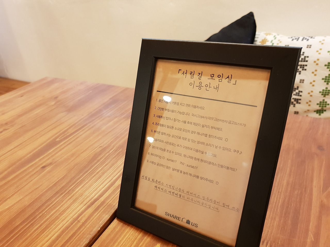 지금은 입주자분들이 공간 이용에 대해 '공간사용일지'를 자발적으로 써서 그 시간만큼 이용하고 계세요. 저희가 굳이 말씀을 안 드려도, 입주자분들이 알아서 그렇게 시스템을 만들어주신 거죠.