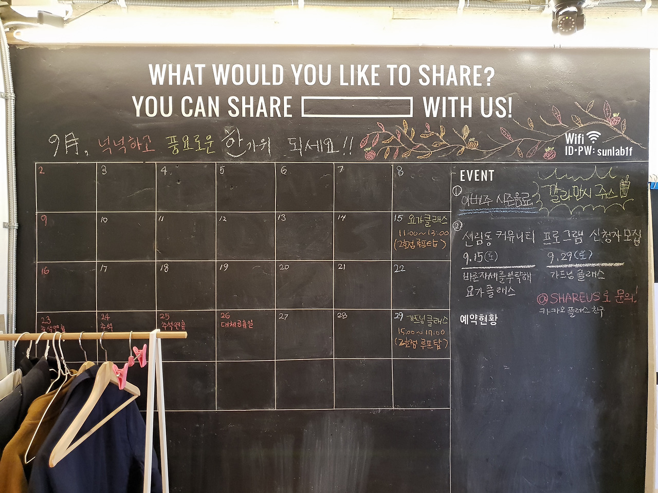요즘은 일주일에 한 번 혹은 격주에 한 번 프로그램을 진행하는데 저희 입주자들에 한정된 프로그램이 아니라 신림동 전체 지역 커뮤니티를 위한 프로그램을 진행해요. 주로 청년 1인 가구의 다양한 라이프스타일에 맞춘 주제로 기획하고 있어요.
