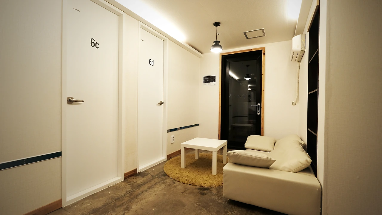 1+1 유닛은 같이 쓰는 화장실을 가운데 두고 양쪽 공간을 독립된 방으로 만들었어요. 출입문이 따로 있기 때문에 사적인 생활이 어느 정도 보장된다고 볼 수 있죠. 2 유닛은 1+1 유닛과 입주하는 인원은 같지만, 침대와 책상을 함께 공유하고 있어 '함께 산다'는 느낌이 강한 구조입니다. 3 유닛과 6 유닛은 사람들과의 접점이 높아요. 각자의 방이 있지만 거실, 부엌, 발코니, 화장실 등을 같이 쓰기 때문이죠.