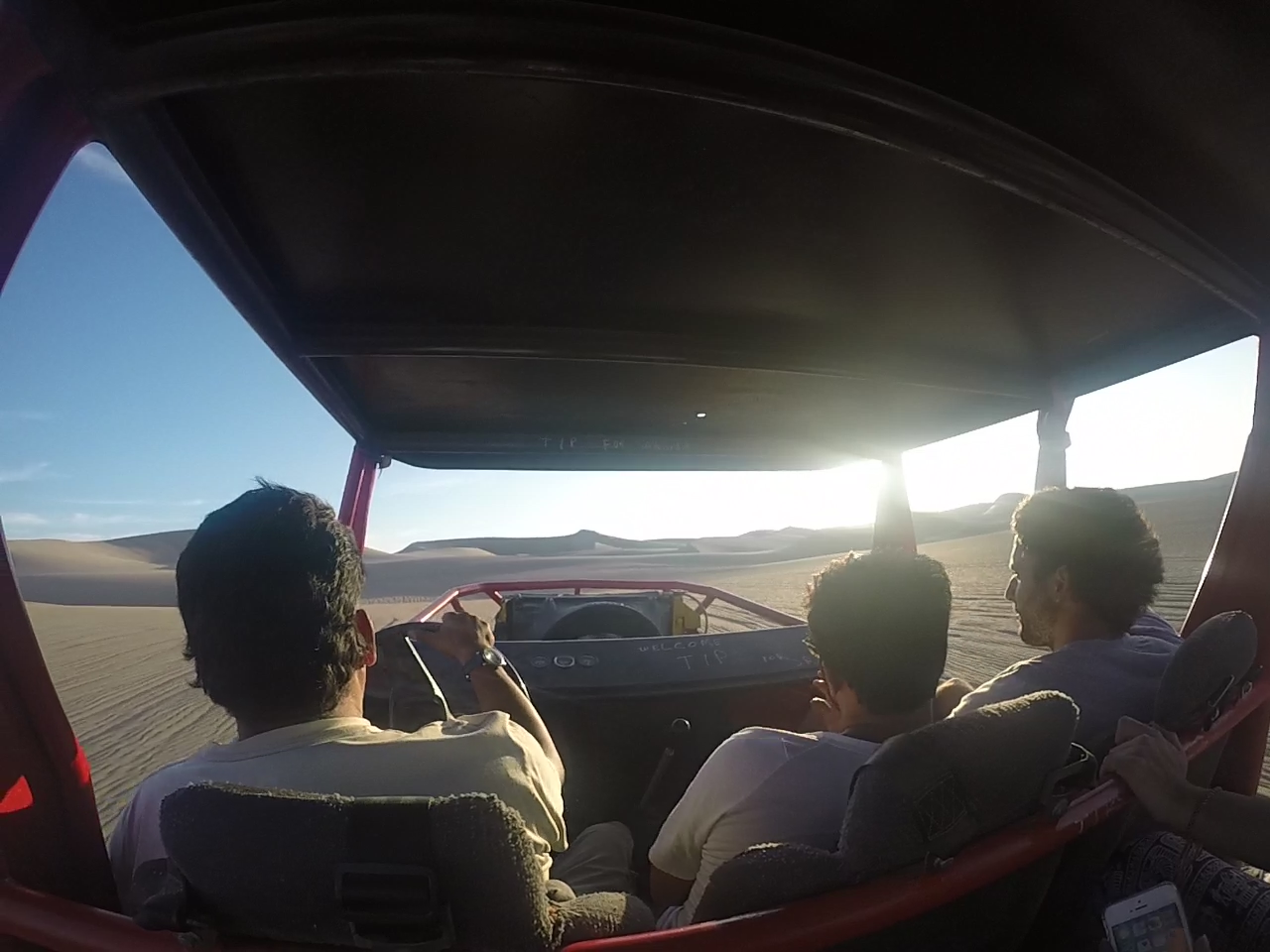 숙소를 잡고 4시 반부터 6시까지 하는 투어를 신청했다. 투어에는 버기카를 타고 사막을 달리는 버기 투어와 샌드 보딩 투어가 함께 포함되어 있었다. 창문 없이 뻥 뚫린 버기카에 이스라엘에서 온 청년들과 미국에서 온 노부부와 우리 일행 다섯 명이 탑승했다. 드디어 사막 한 가운데로 출발이다.