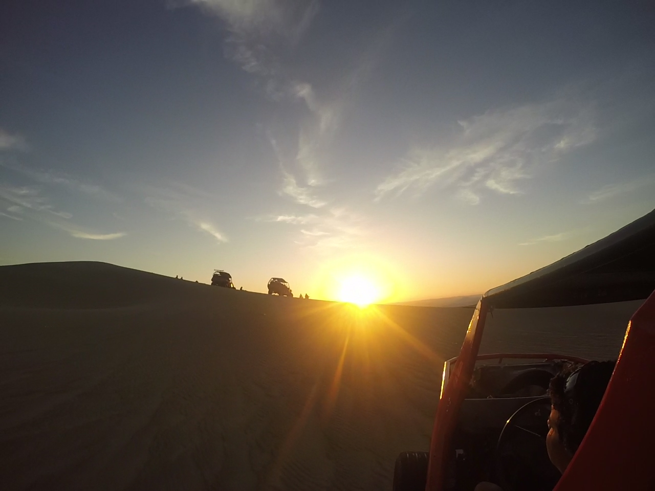 신나게 버기 투어와 샌드 보딩을 즐기고 난 후, 버기카는 우리를 태우고 다시 어디론가 향했다. 달려가다 보니 저 멀리 사막의 지평선으로 해가 넘어가려 하고 있었다. 일몰을 보기 위해 버기 차들이 하나 둘 모여있었고, 사람들은 연인들과, 친구들과 어깨를 기대고 앉아 지는 해를 바라보고 있었다.