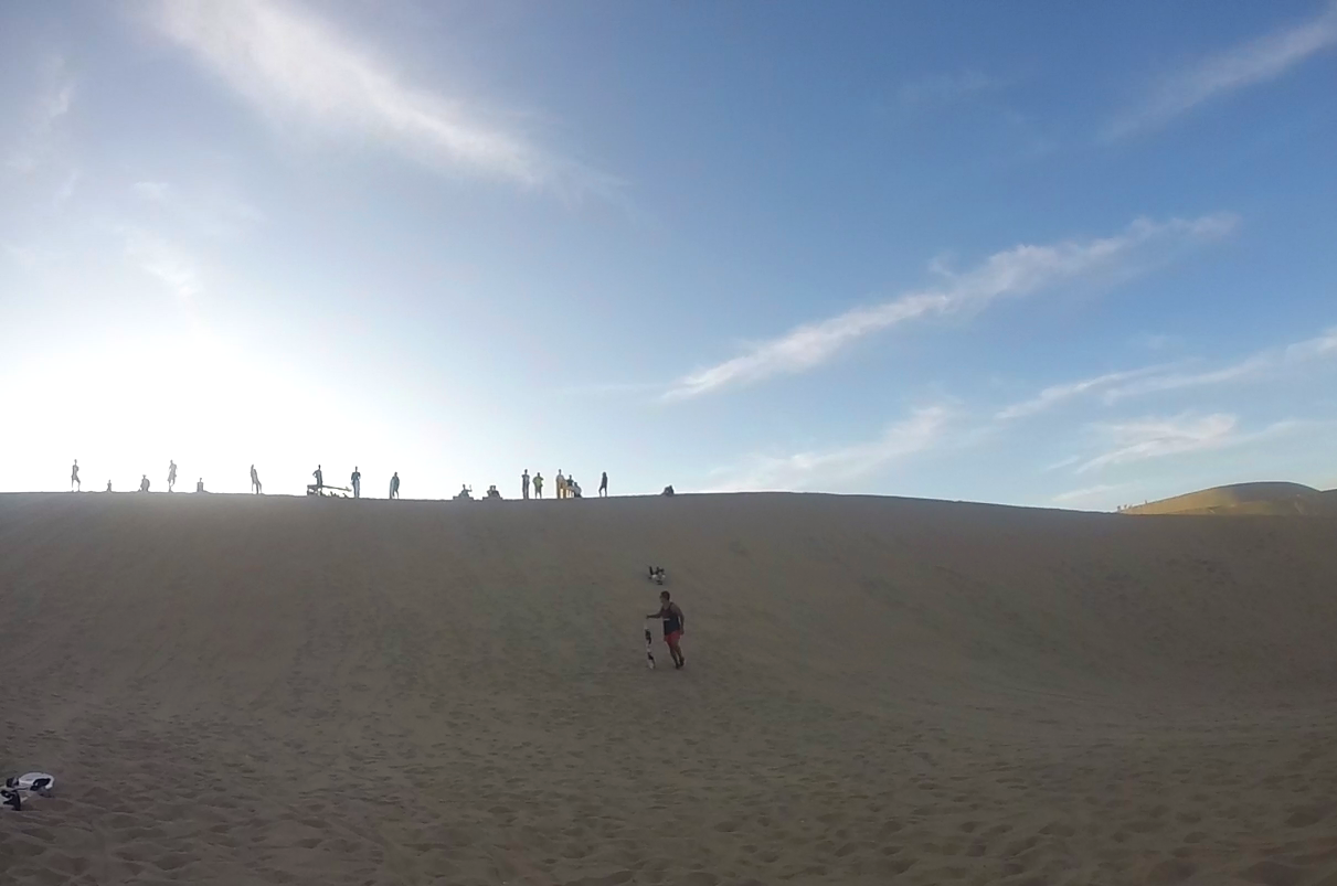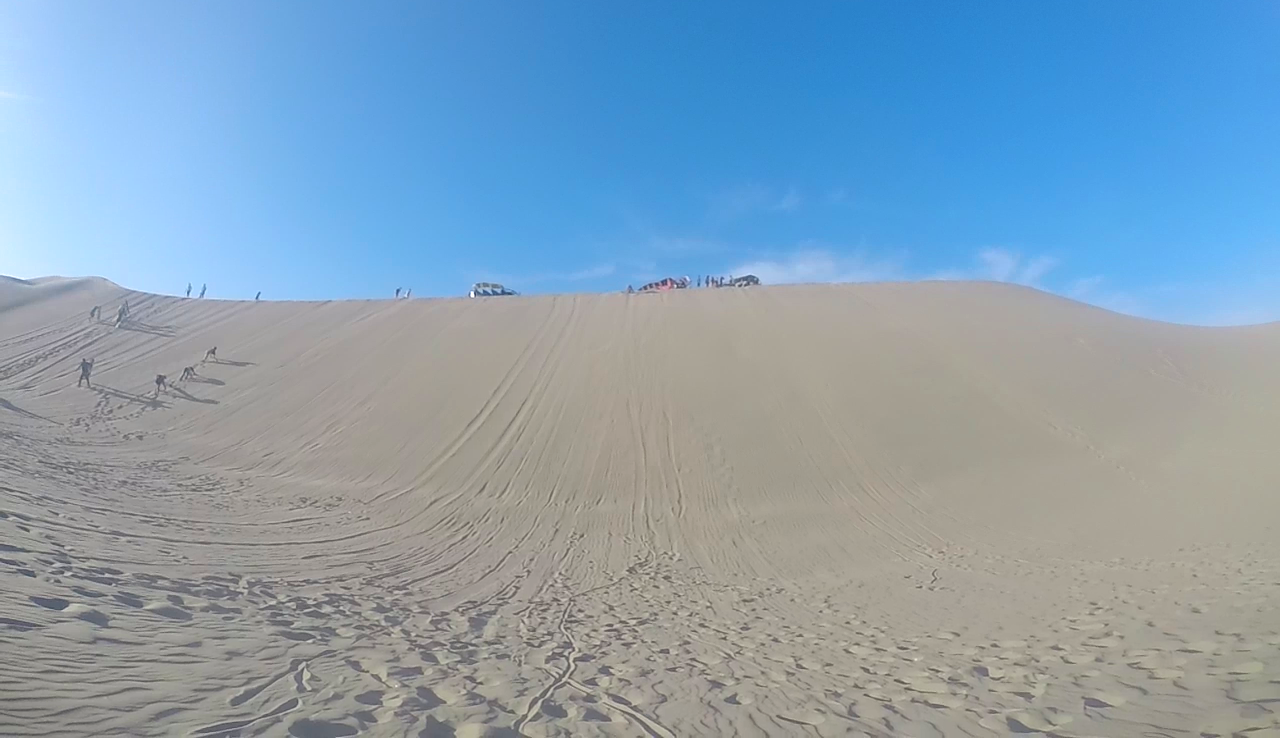 한참 동안 버기카로 스릴 있게 사막을 가로지르고 나면 적당한 곳에 내린다. 이 곳에서 사진을 찍고 샌드 보딩 투어를 할 수 있다. 보드를 하나씩 받아 들고 보드 밑면에 왁스칠을 꼼꼼히 한다. 모래를 매끄럽게 내려갈 수 있게 하기 위함이다. 보드에 엎드려 보드 앞쪽의 벨트를 꽉 잡고 기다리면, 하나, 둘, 셋 하고 아저씨가 힘차게 밀어줌과 동시에 칼날처럼 매끄러운 모래사막 위를 빠르게 하강한다. ‘아아아 아아아악’ 사람들이 저마다 내지르는 비명소리가 여기저기서 들린다. 모래 위를 타고 내려가 몇 번을 구르다 보면 너도나도 머리부터 발끝까지 모래 범벅이 되어 있다.