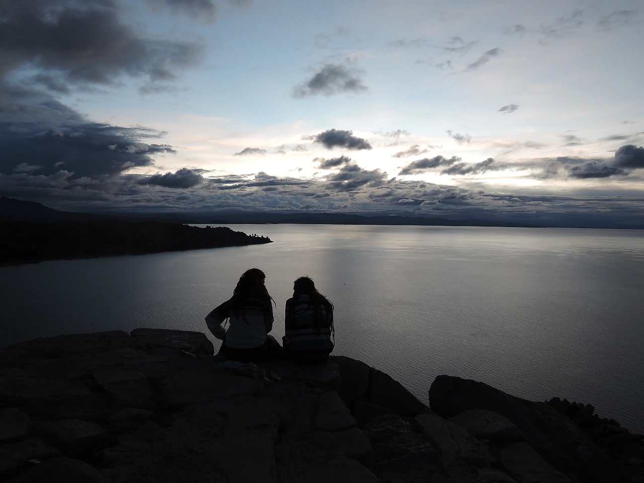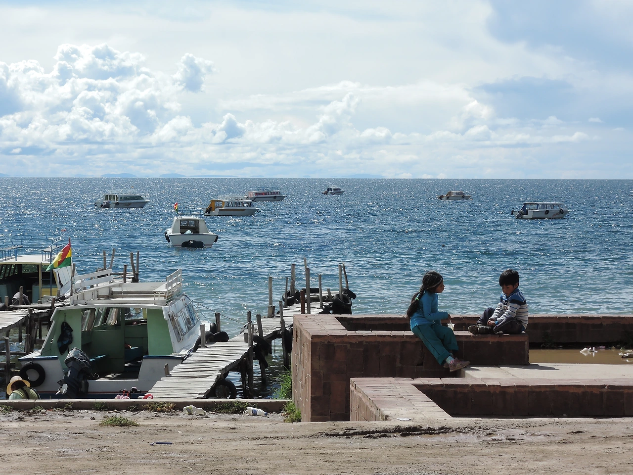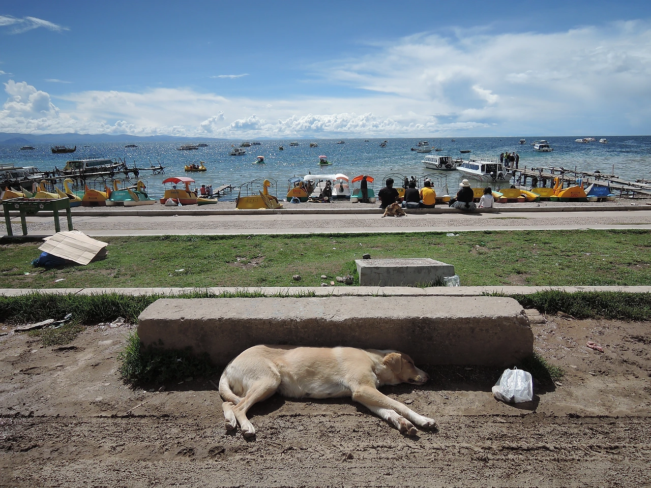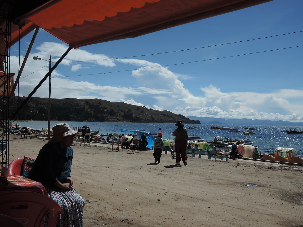 페루에서 볼리비아로 넘어왔음을 여실히 느낀 것은 바로 숙소를 돌아보면서였다. 페루에서는 꼭 비싸고 좋은 숙소가 아니더라도 와이파이, 핫 샤워(가끔 안 나올 때도 있지만), 아침식사는 기본으로 제공이 되었다. 그런데 국경을 넘어 볼리비아로 넘어오자마자 이 세 가지를 충족시켜주는 곳을 찾기가 어려워졌다. 페루와 볼리비아는 대부분 고산지대라 핫 샤워는 감기에 걸리지 않기 위해서라도 꼭 필수적인 것이었다. 어쩔 수 없이 그냥 돈을 조금 더 내고 따듯한 샤워만이라도 보장이 되는 곳을 찾기로 해서 묵게 된 숙소는 전망이 좋아 이름이 ‘mirador(전망대)’인 호텔이었다. 숙소에 짐을 풀고, 오랫동안 버스를 타느라 꾀죄죄한 몸을 깨끗이 씻고 나와보니 이게 웬걸! 숙소의 창문 밖으로 흐린 하늘은 온데간데 사라지고 쨍쨍한 햇빛 아래 호수가 반짝반짝 빛나고 있는 것이 아닌가. 우리는 그 풍경을 창문 너머로만 보고 있을 수 없어 서둘러 호숫가로 뛰쳐나갔다.