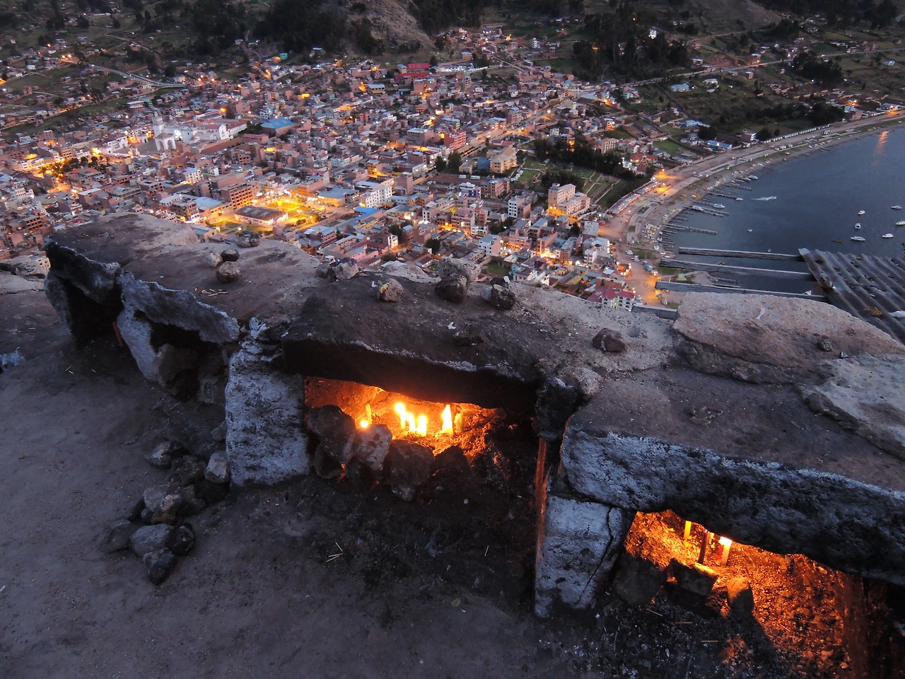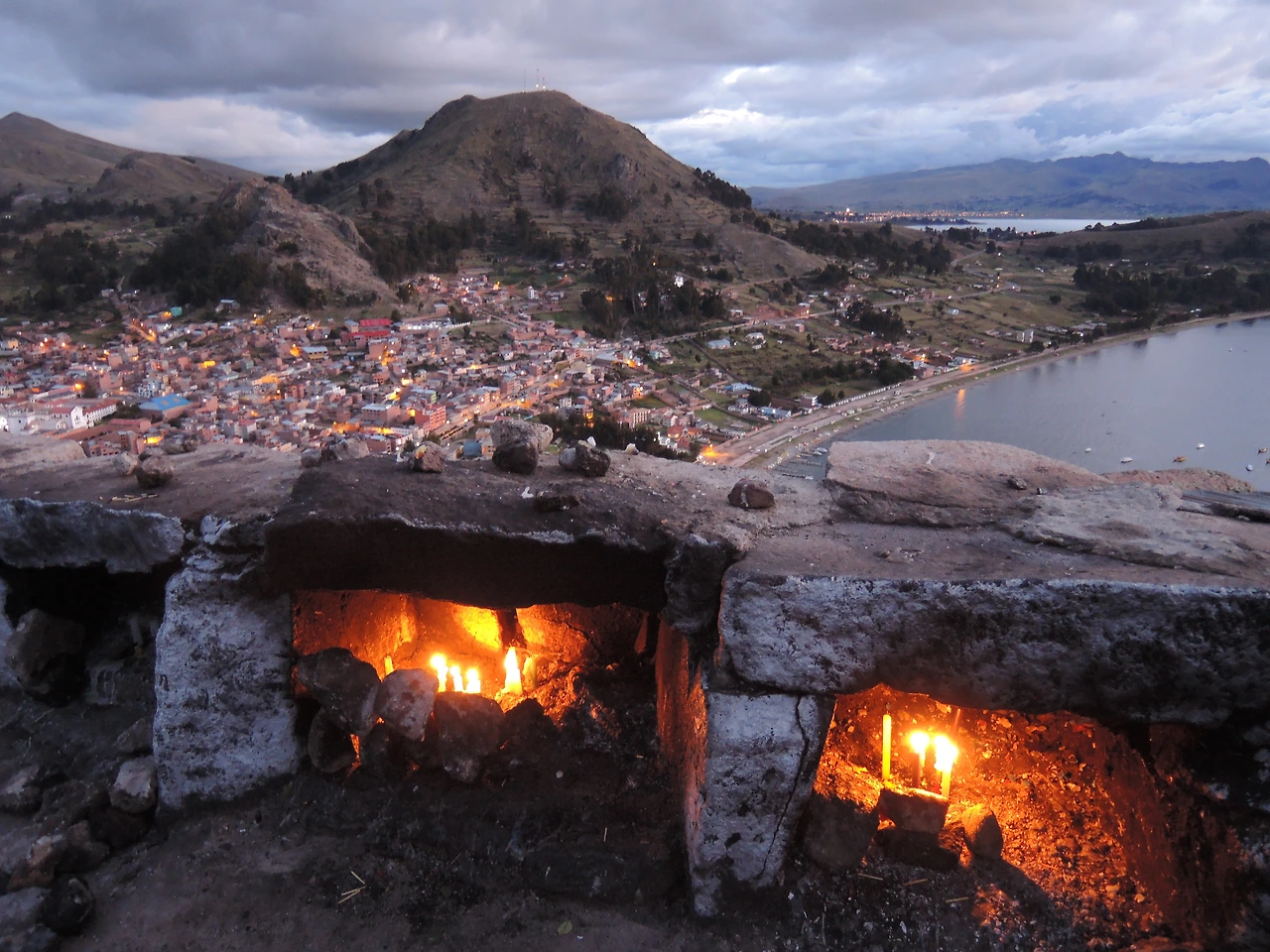 한참 동안 티티카카 호수를 바라보다 내려갈때즘, 마을엔 하나둘씩 불이 켜지고 있었다. 그리고 그 무렵 전망대엔 사람들이 기도를 하며 켜놓고 간 촛불이 활활 타오르고 있었다. 마치 사람들의 소망이 담긴 촛불이 마을을 따듯하게 밝히는 것 같았다. 티티카카 호수는 코파카바나라는 작은 마을이 살아가는 이야기가 담긴 곳이었다. 배를 타고 호수로 나가 잡아온 송어로 음식을 하고, 여행객을 대접하고, 호수를 가로질러 태양의 섬까지 관광객을 실어나르고... 하루를 마무리하며 고된 마음을 묻어두는 곳이었다. 잠시 들린 여행자에게 반짝거리는 천국 같았던 호수가 그들에겐 삶이라는 생각이 들었다.