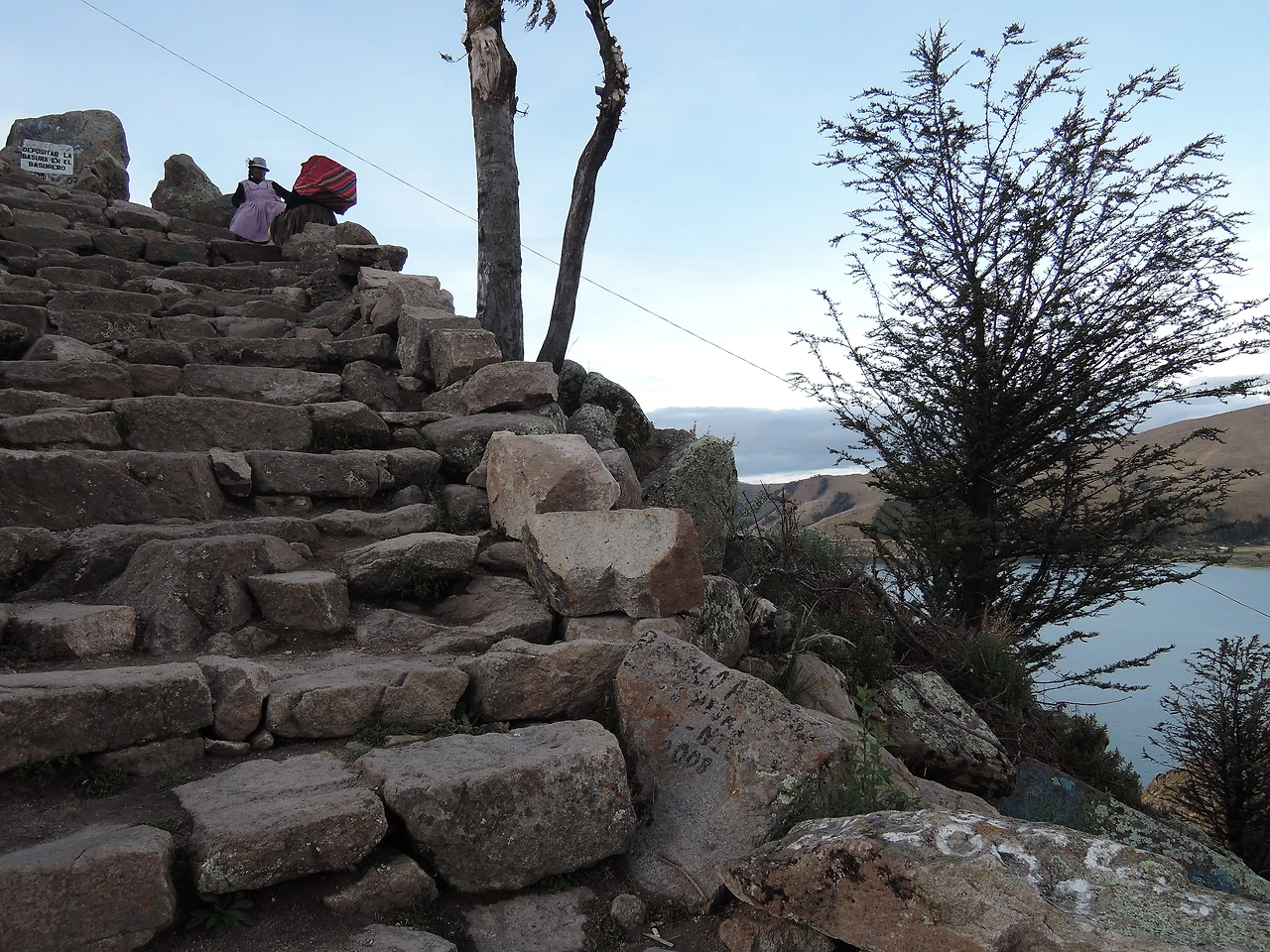 코파카바나 마을에는 작은 언덕을 올라가면 티티카카 호수와 마을 전경을 내려다볼 수 있는 전망대가 있다고 해서 해가 질 즈음, 노을을 볼 수 있을 시간에 맞춰 전망대에 올랐다. 마을 자체가 고산지대인데다 전망대까지가 은근히 높아 헥헥거리며 올라가야 했다. 언덕을 조금 오르자, 여행객이 많이 찾는 장소라 그런지 요깃거리를 팔러 나온 마을 사람들이 보였다.
