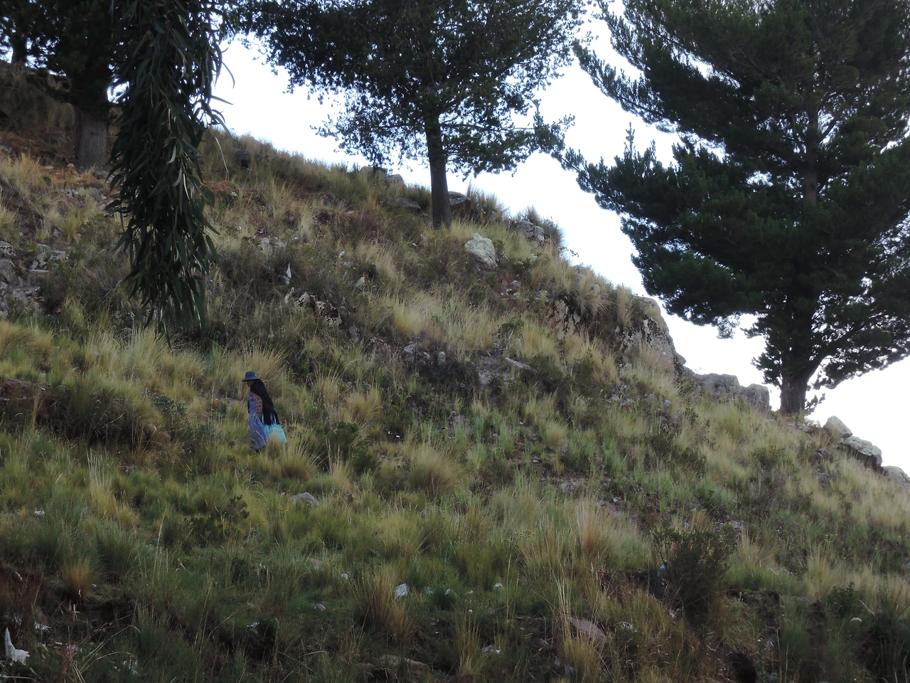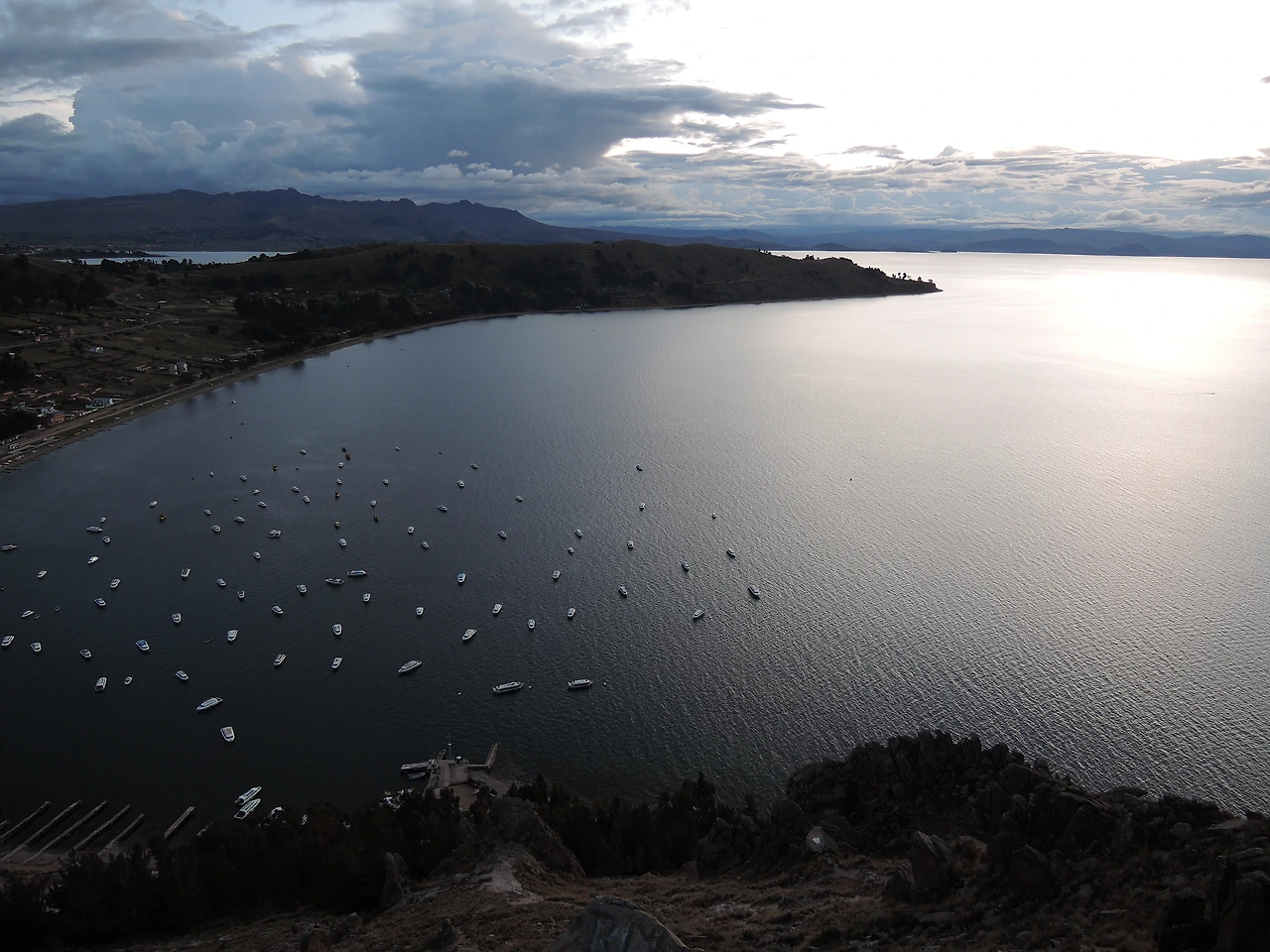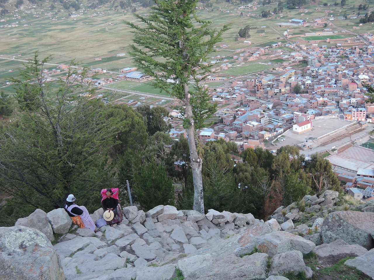 한참을 올라 뒤를 돌아보니 블록처럼 작아진 코파카바나 마을이 한눈에 들어왔다. 호수의 그 많던 배들도 여기서는 옹기종기 떠 있는 작은 장난감 같았다.