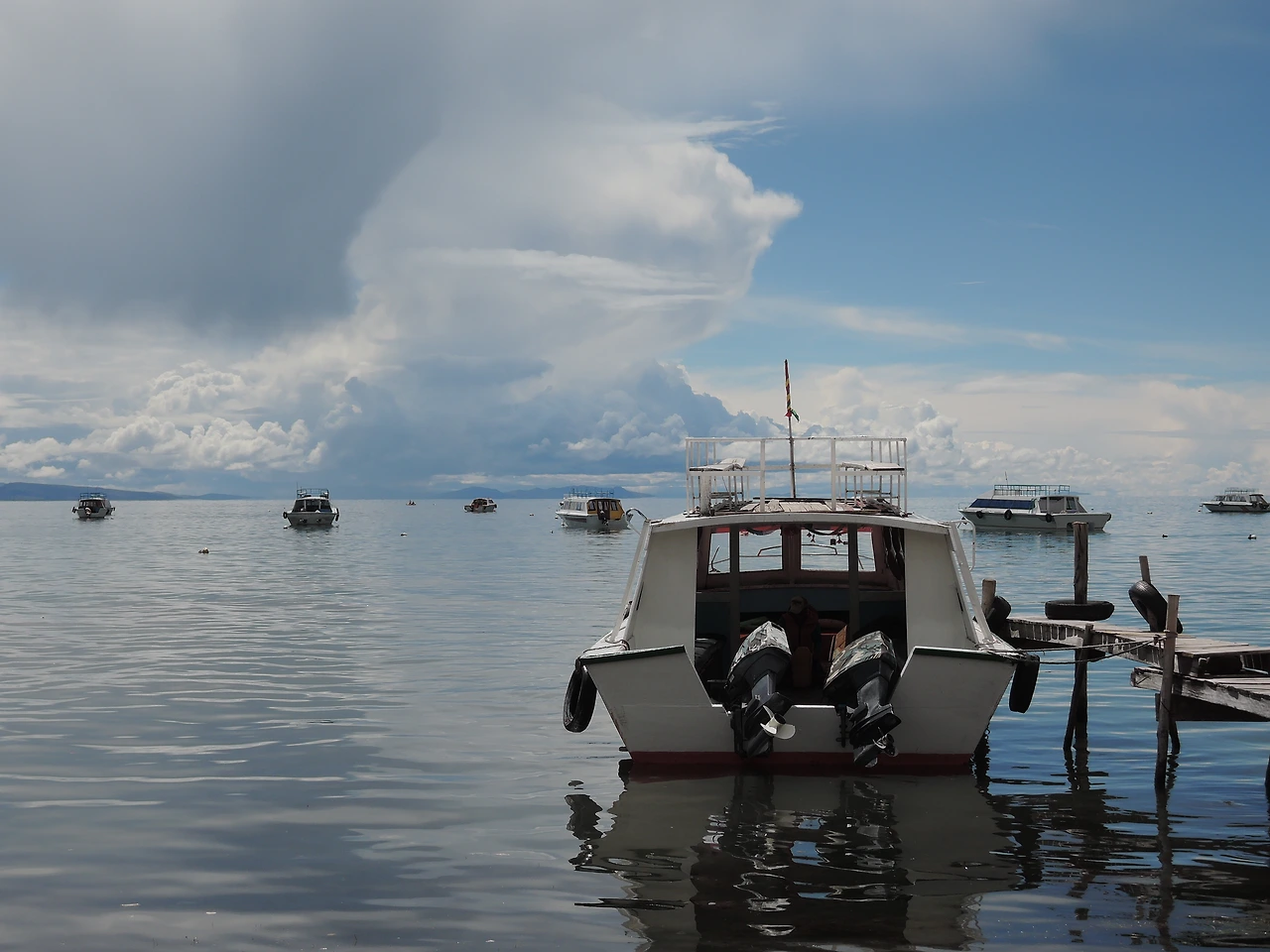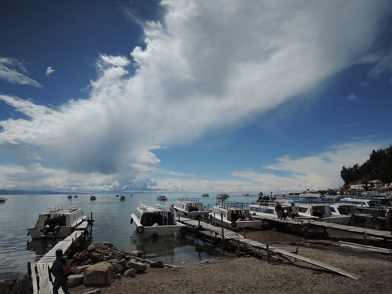 이름만 들어도 맑고 신비스러운 느낌이 드는 티티카카 호수. 티티카카는 해발 3800m에 위치한 세상에서 가장 높은 호수이다. 높기도 높지만 바다처럼 거대한 이 호수는 페루와 볼리비아 두 나라의 국경에 걸쳐져 있어서 양쪽에서 감상할 수 있다. 티티카카 호수가 있는 볼리비아 쪽의 마을은 '코파카바나'이다. 우리가 도착할 즈음 코파카바나 마을엔 비가 막 그친 듯 땅이 젖어있고, 하늘에 뿌연 먹구름이 잔뜩 껴있었다.
