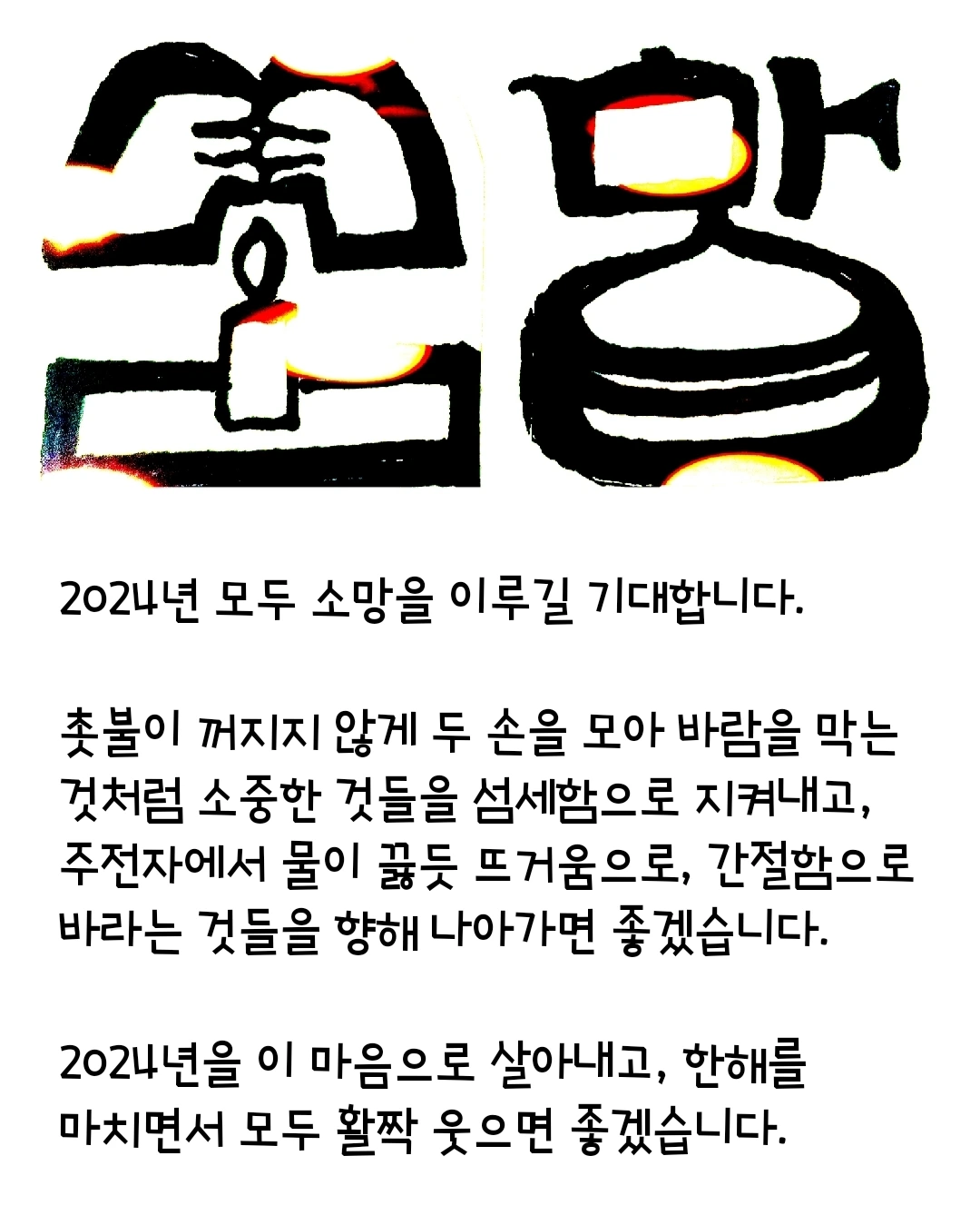 내게 2023년의 대표 단어가 그리움이었다면, 2024년의 대표 단어는 소망으로 정했다. 고심 끝에 이렇게 그림 글씨로 표현해 봤다.
