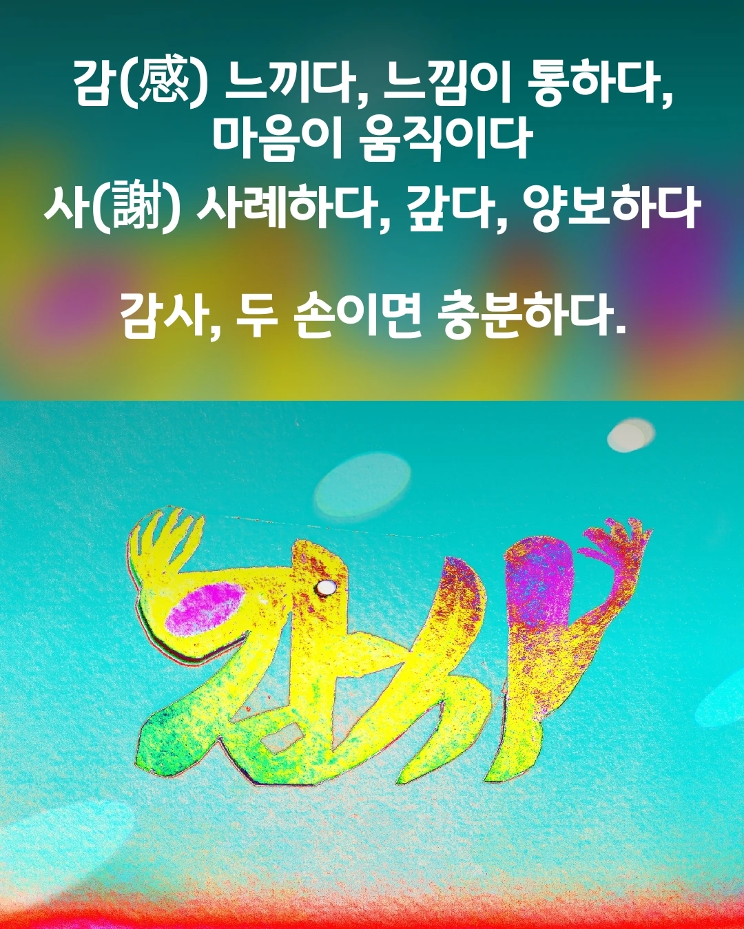 주위를 잘 둘러보고 남김없이 모조리 느끼면 알게 된다. 얼마나 감사한지. 그 감사를 표현하는 건 두 손이면 충분하다.