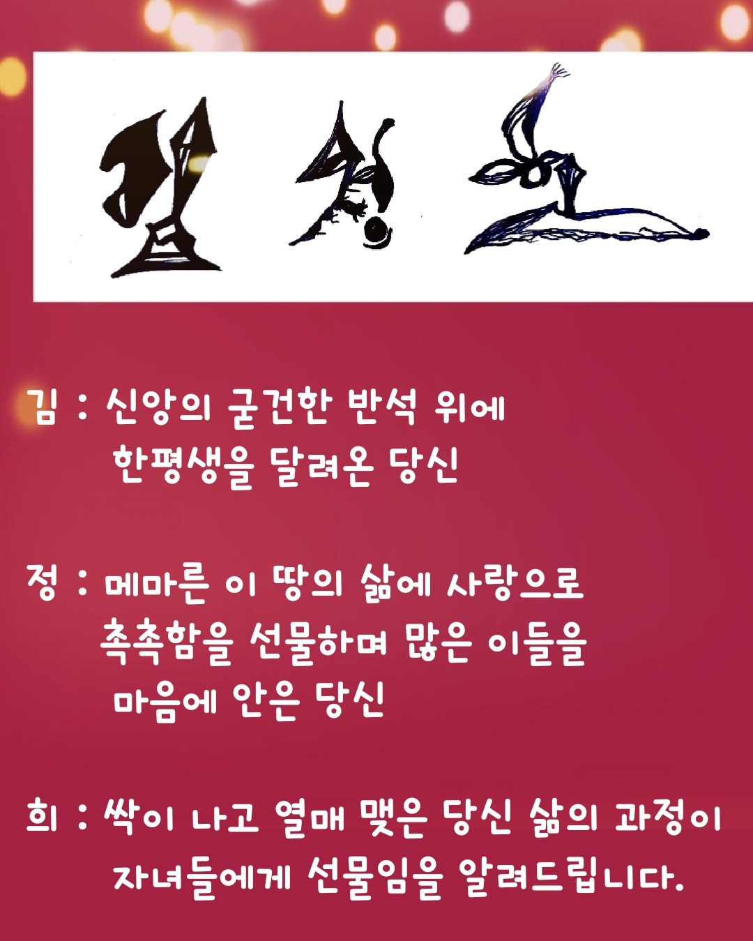 엄마 생신을 맞아 엄마 이름으로 그림 글씨를 만들고 이렇게 적었다.