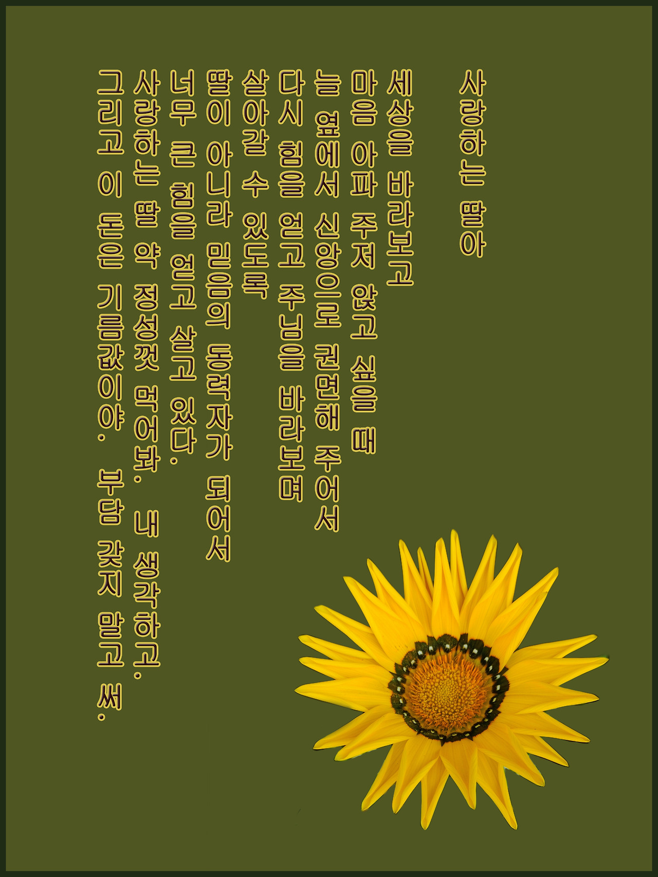 정: 정성스레 키웠다. 그러나 어려운 형편이었기에 늘 딸들에게 미안했다.