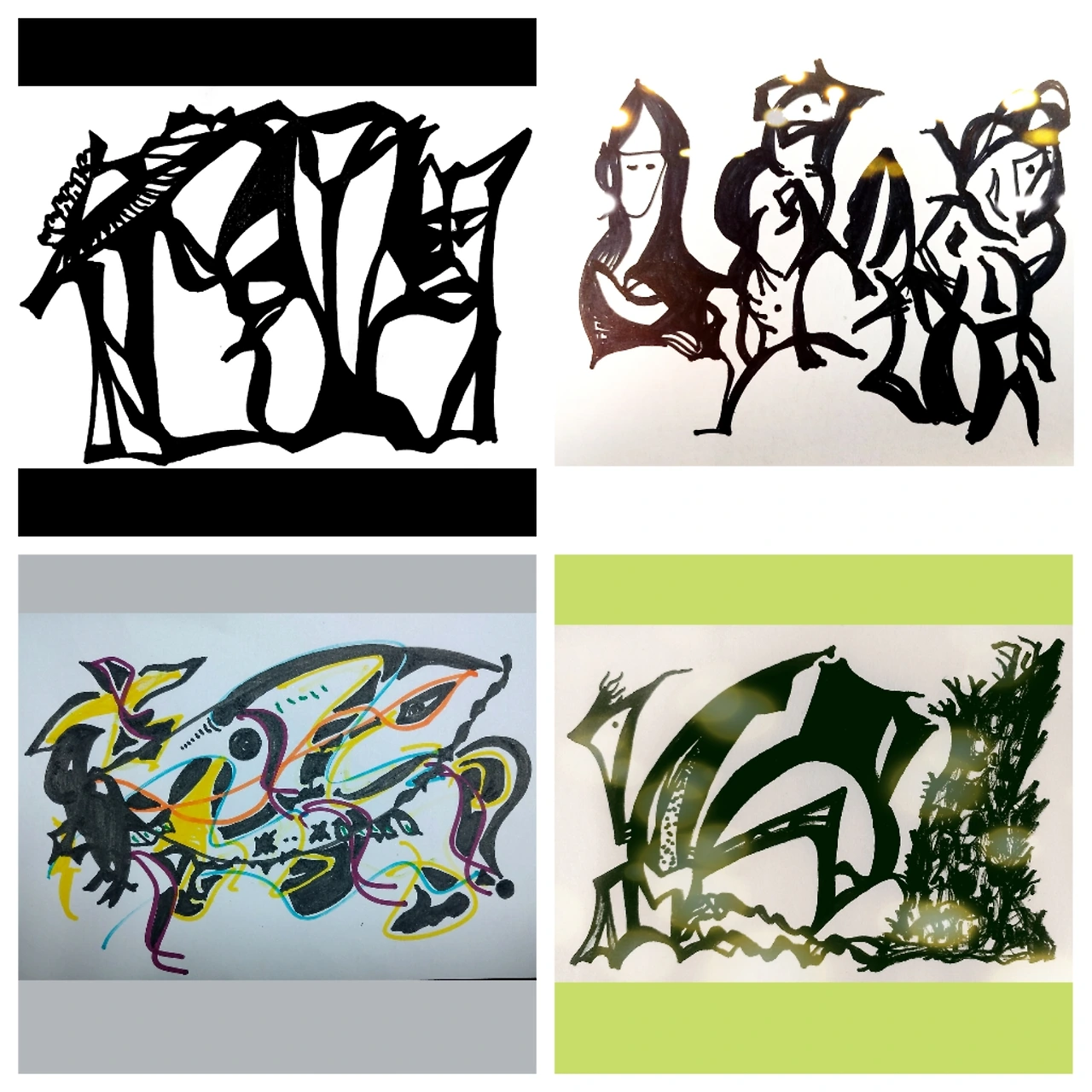 그리고 또 한 가지, 나는 병적으로 떨어져 있는 것을 하나로 연결한다. 처음 그림은 유리벽이라는 글씨를 쓰고 연결한 거다. 나에겐 "함께"가 중요하기 때문일 거다.