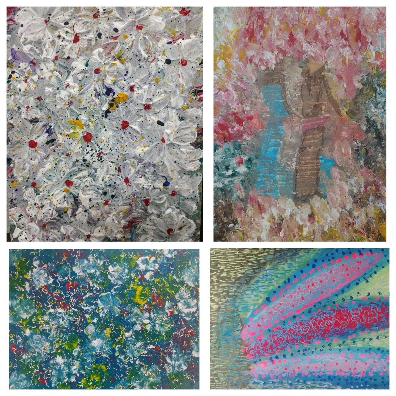 표현이 서툴러서 그리고 엎고를 반복하고, 결국은 할 수 있는 게 없어서 꽃으로 마무리하는 경우가 많다. 겉으로 보기엔 꽃그림이지만 그 안에서 여러 겹의 색들이 깔려 있다.