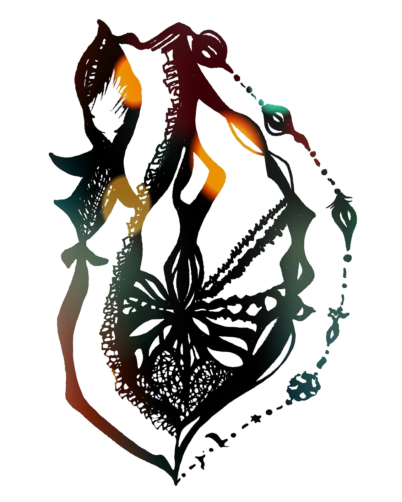 아래 그림 속의 아이는 마치 음악에 맞춰 춤을 추고 있는 듯 보인다. 아이의 흔들림은 선을 만들고, 그 움직임은 소리를 내며 무언가 연주하는 것처럼 보인다. 하지만 내 그림 속 그 소리는 즐거운 음악이 아니라 깊은 내면의 고통에서 흘러나오는 소리다. 혼자만 감당해야 하는 아픔을 드러내는 소리. 그리고 그 움직임은 춤이 아니라, 슬픔에 발이 묶여 휘청이는 모습이다. 그 모습은 지금껏 내가 바라본 삶의 한 단면이다.