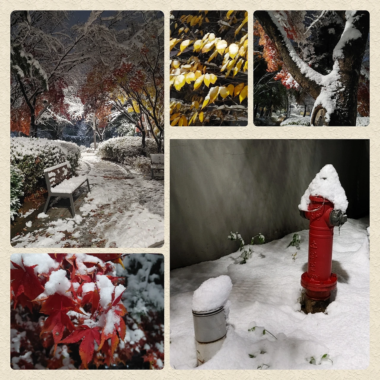 몇십 년 만에 큰 눈이 내리던 날이 떠오른다. 그날, 비행기가 연착되고 비닐하우스가 무너져 고생한 분들도 계셨다. 하지만 나는 철없는 아이처럼 행복했다. 손끝으로 눈의 감촉을 느끼며 길을 걷고, 사진을 찍었다. 눈모자를 쓴 빨간 소화전, 곶감처럼 매달린 노란색 나뭇잎, 동화 속 풍경 같은 눈 덮인 공원... 모든 풍경이 아름다웠다.