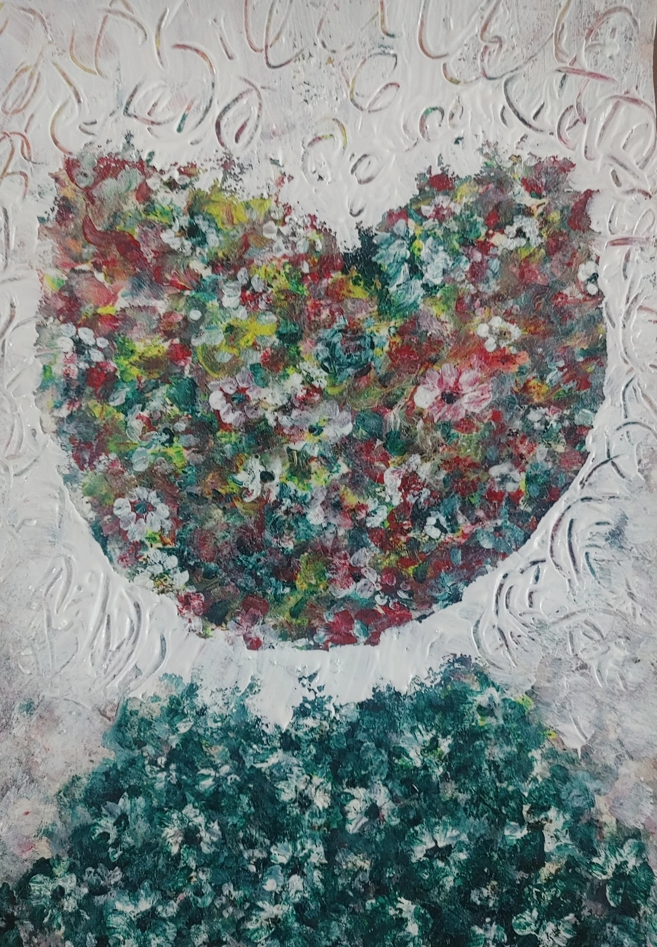 녹차물로 들인 바탕 위에 하트를 하나씩 심었다.
