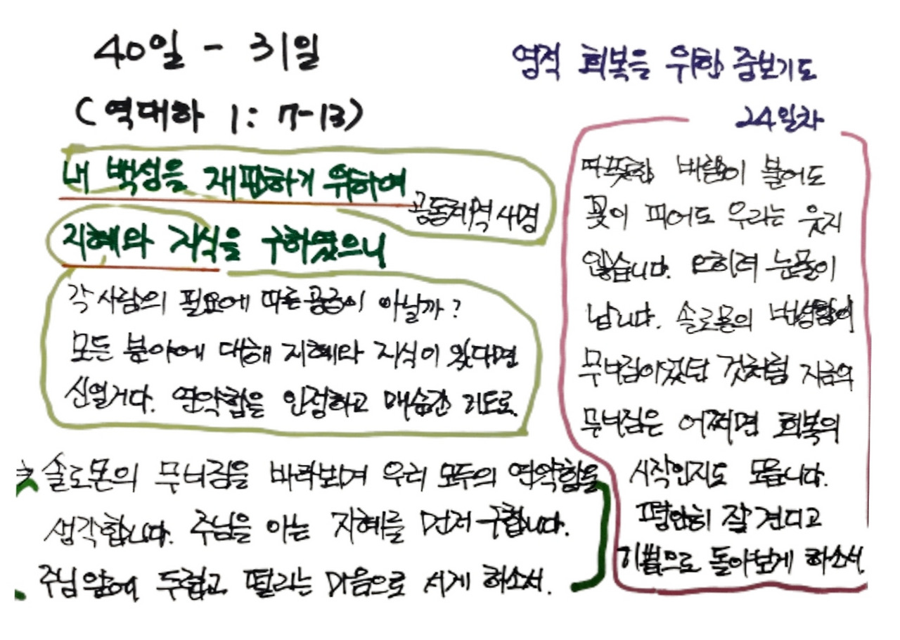 손으로 써 내려간 묵상의 조각입니다.