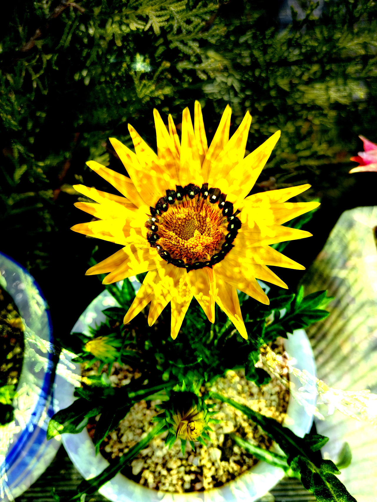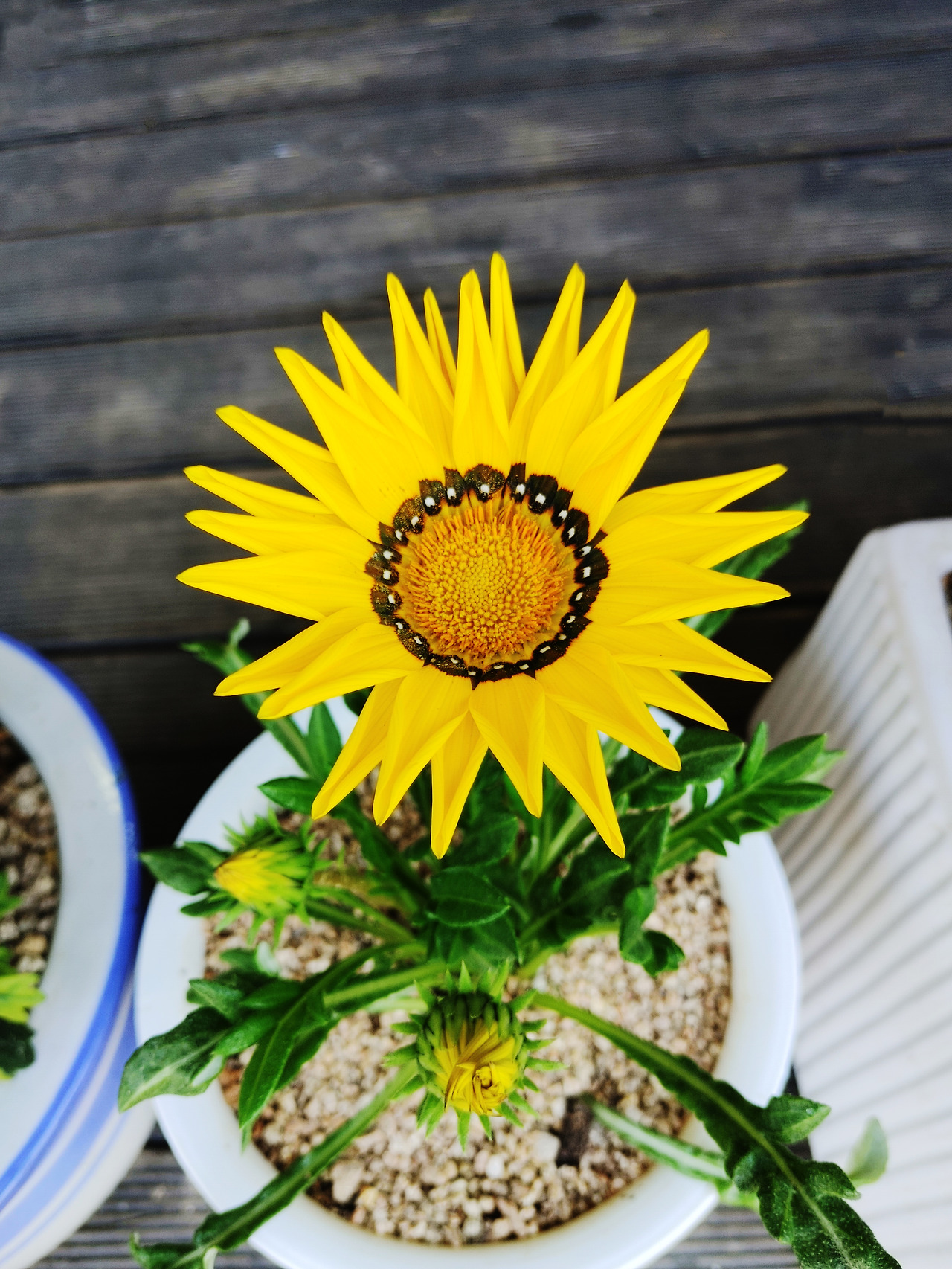 집 앞에 있는 식당 화분이다. 해바라기처럼 생겼는데 검색해 보니 태양국(가자니아)다. 꽃말은 수줍음, 친근한 사랑, 미소로 대답하다.